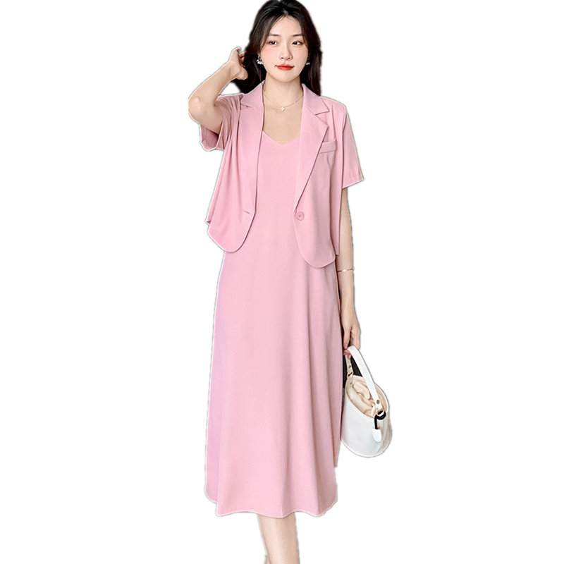 高端孕妇c装夏天连衣裙套装时髦辣妈通勤西装裙大气简约纯色吊带