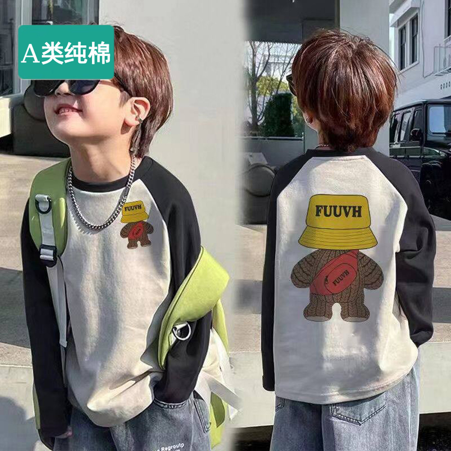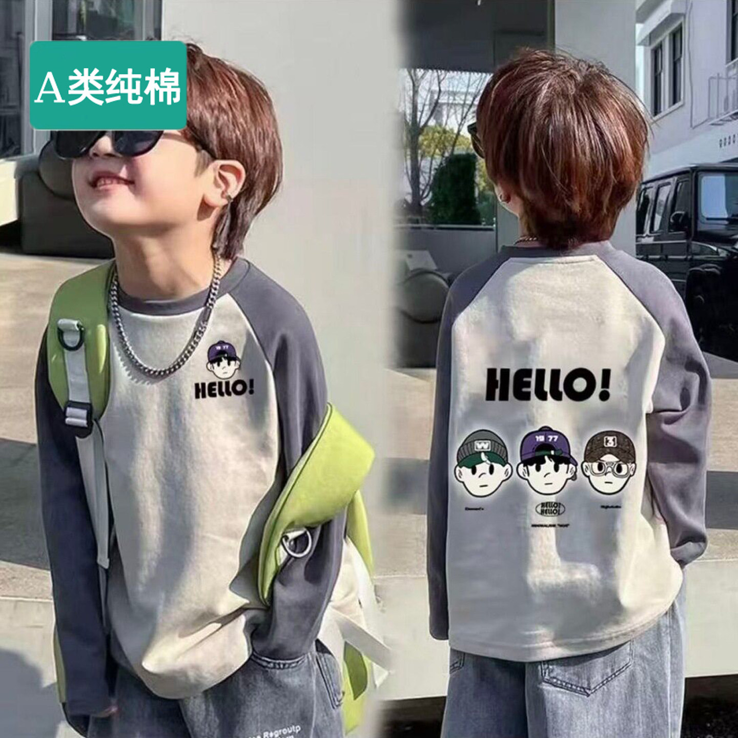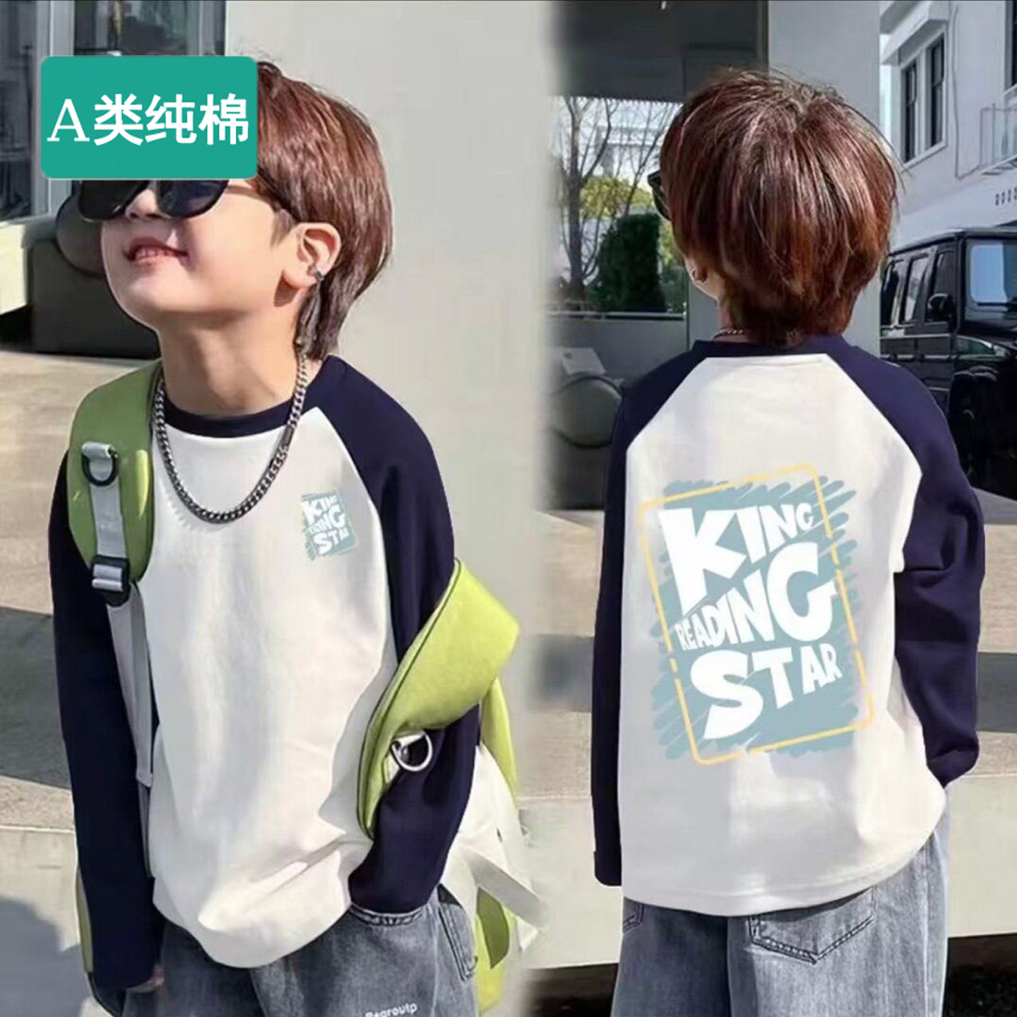 全棉男童长袖t恤100%纯棉儿童大童圆领打底衫春秋2026新款上衣潮