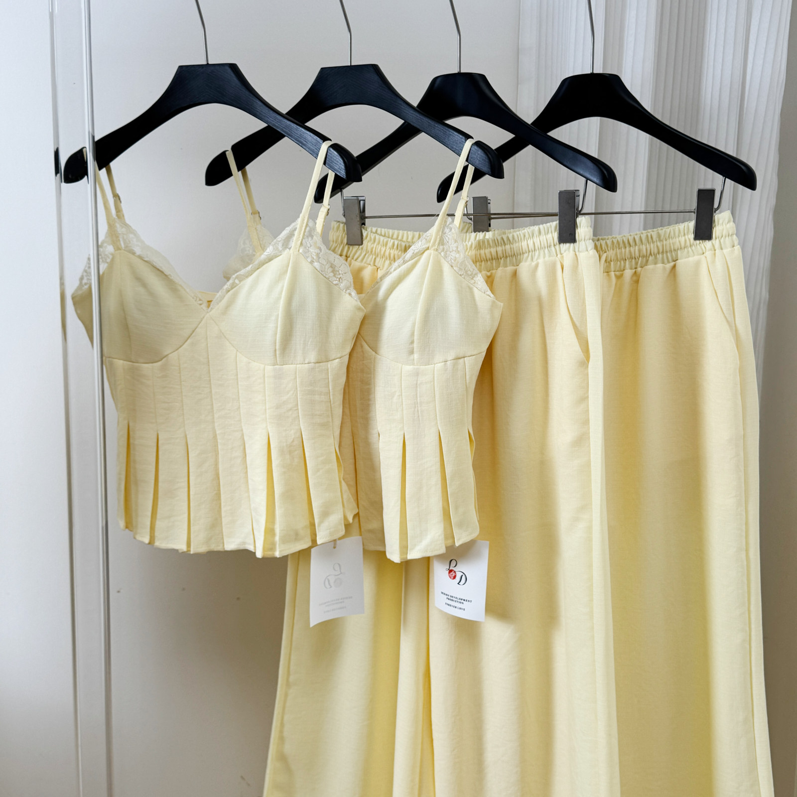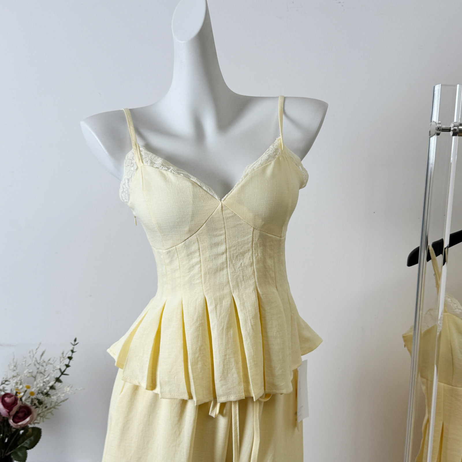 灰尘邓邓 早春穿搭套装女2026新款亚麻吊带上衣裤子度假两件套