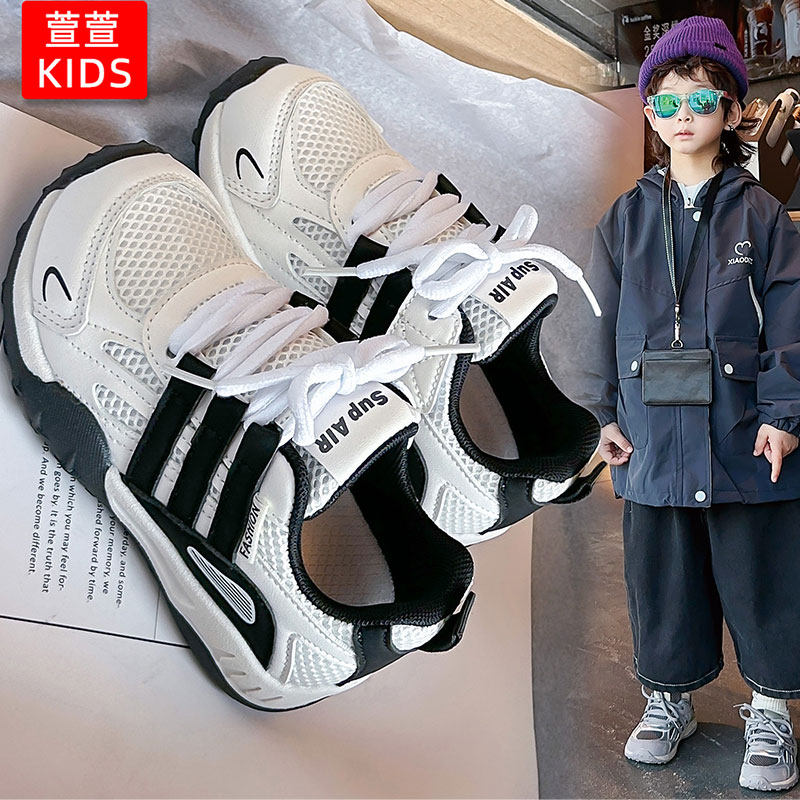 儿童鞋子春秋款网鞋男童运动鞋系鞋带小孩跑步鞋透气网面女童鞋潮