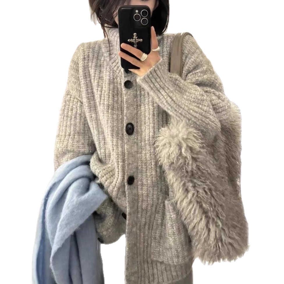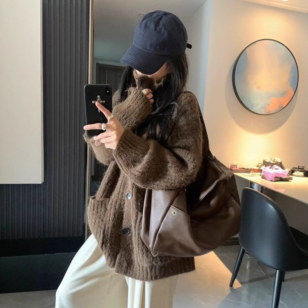 韩系慵懒风高领毛衣女外套秋冬装高级感宽松大版软糯针织上衣加厚