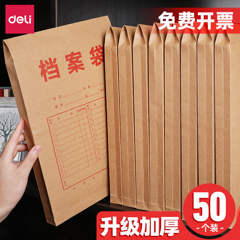 得力100个档案袋牛皮纸袋加厚a4文件袋文件收纳袋资料袋公文袋纸质投标袋合同袋公文袋试卷袋大容量办公用品