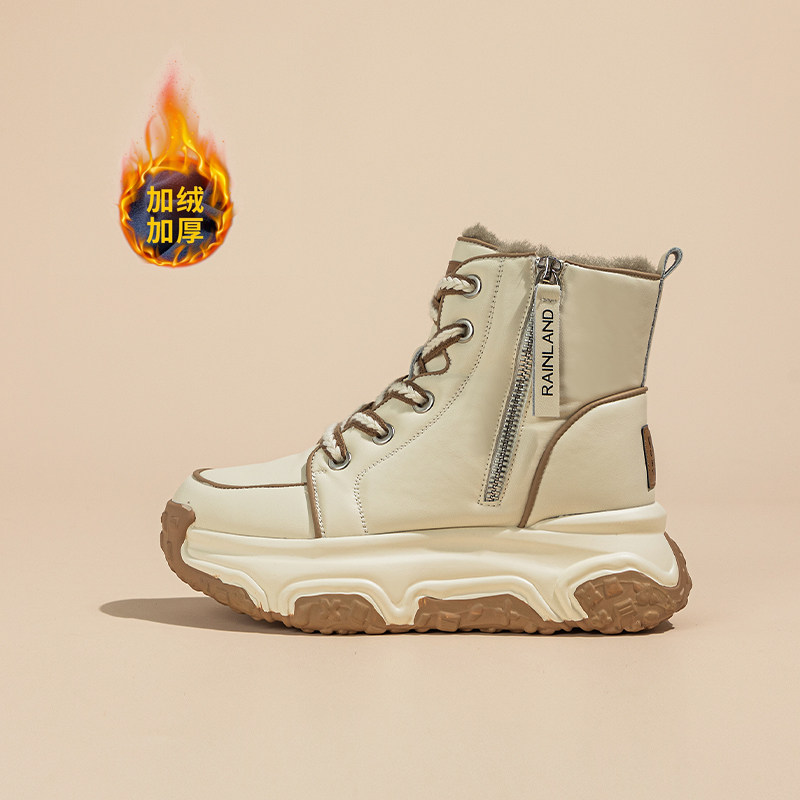 雨土厚底增高帮小白鞋女2024春秋新爆款真皮休闲运动轻便老爹鞋子