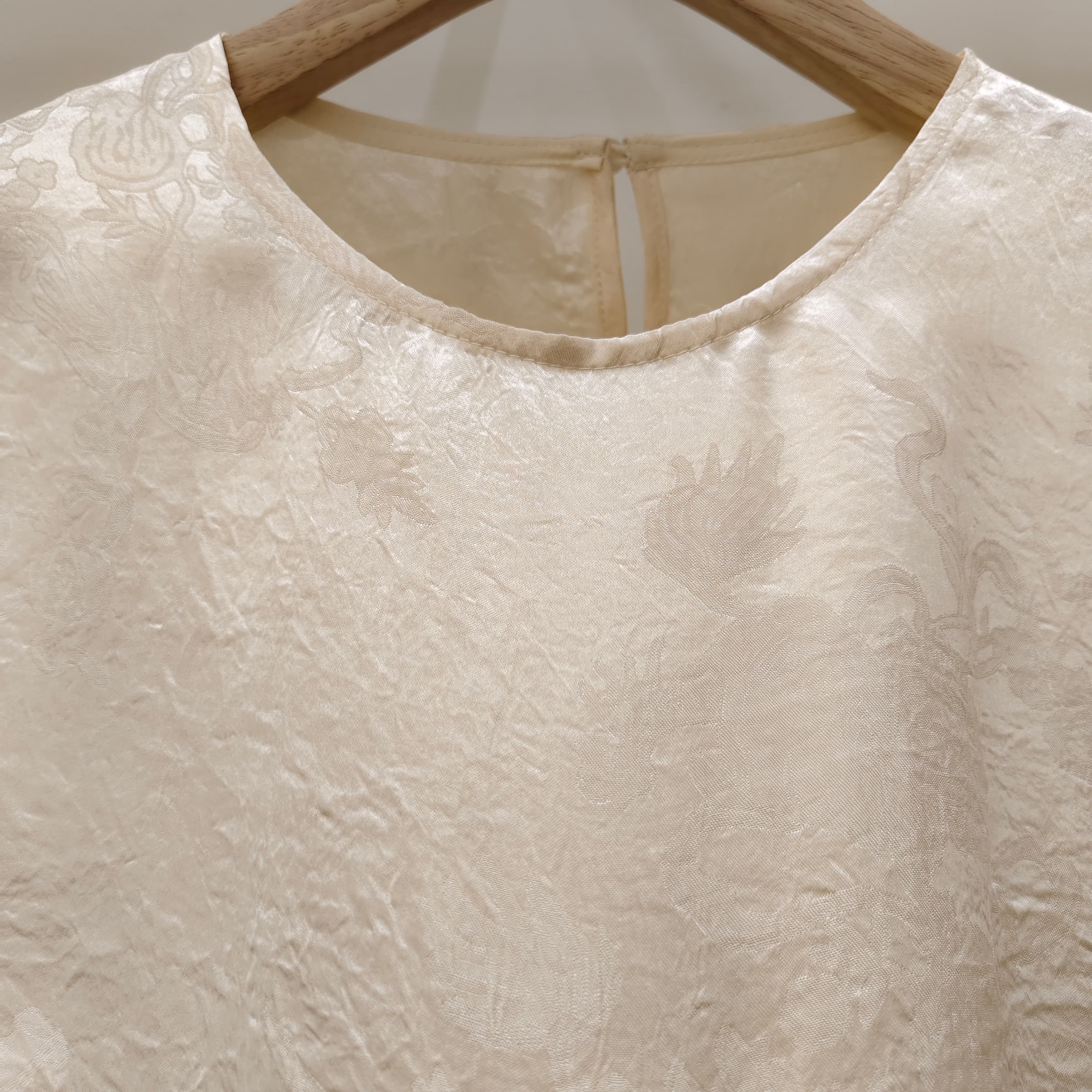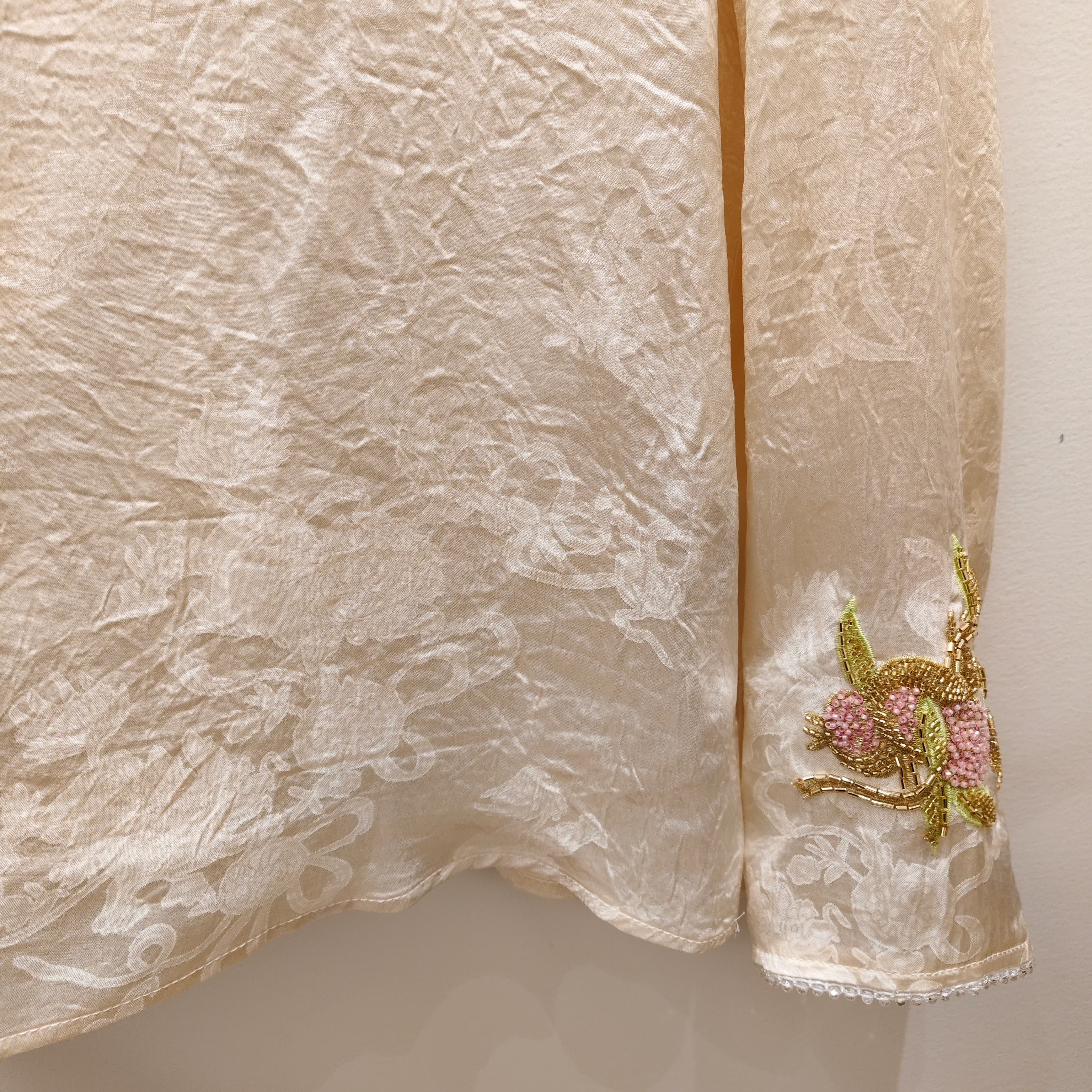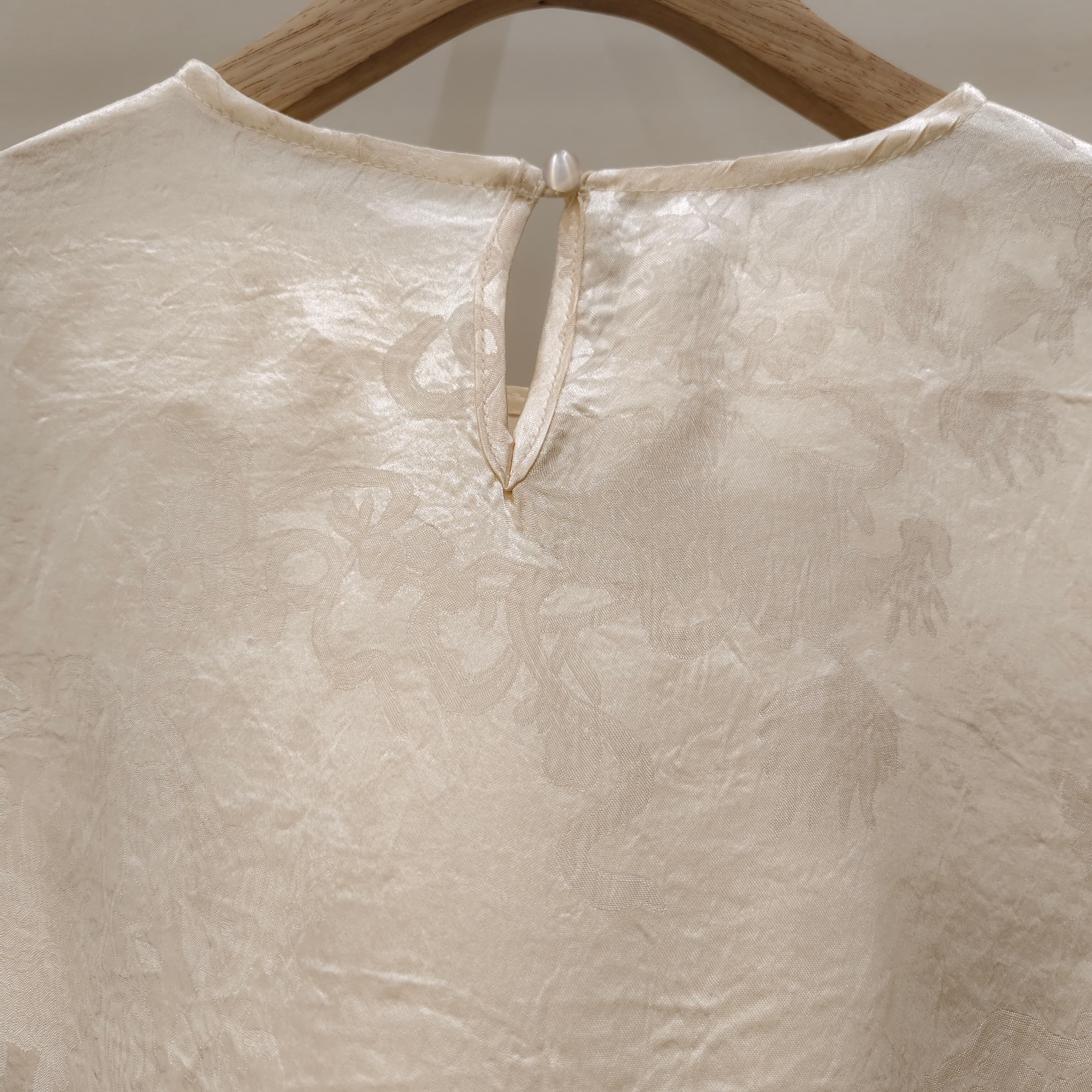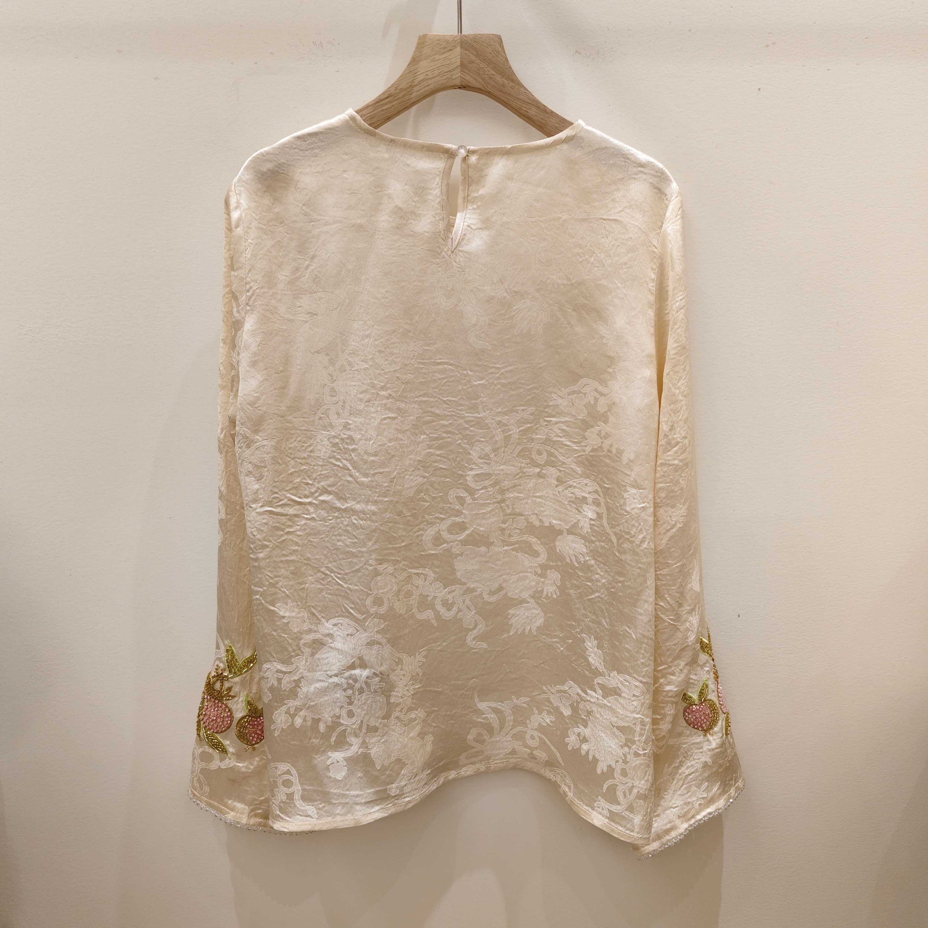 2026早春新款圆领人丝提花新中式衬衫女高级感刺绣钉珠长袖打底衫