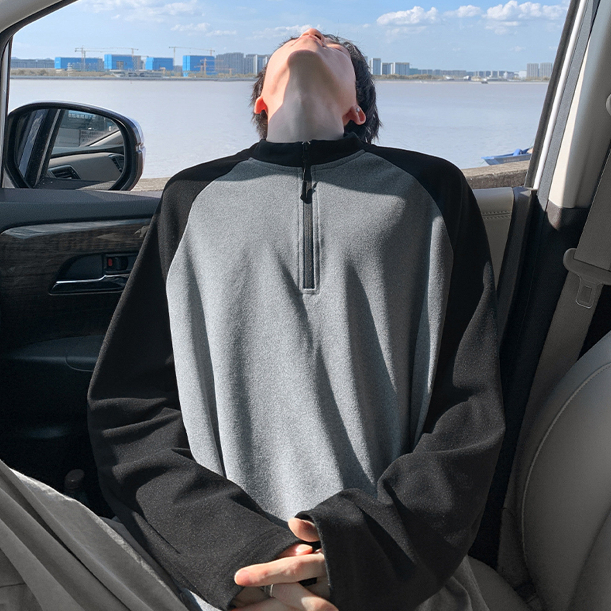 胖胖哥插肩长袖德绒t恤男款春季潮牌拼色宽松大码上衣休闲打底衫