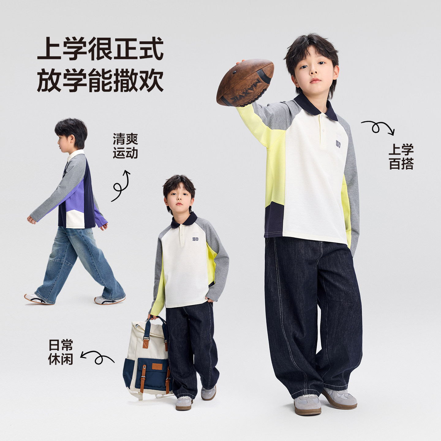 左西童装男童polo衫长袖t恤儿童打底衫2026新款男孩大童学院风潮T
