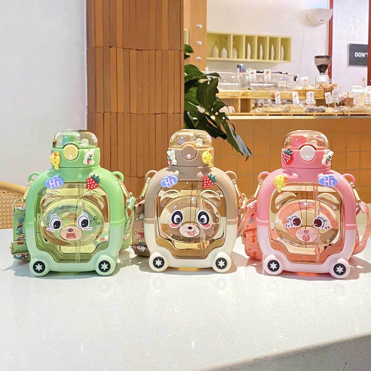 儿童水杯防摔便携吸管杯女生高颜值可斜挎魔力熊方形便携式手提