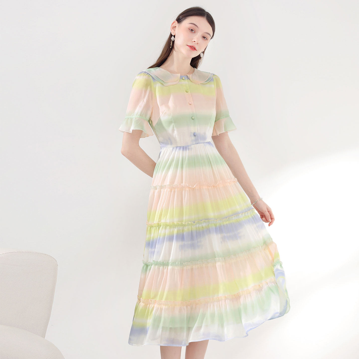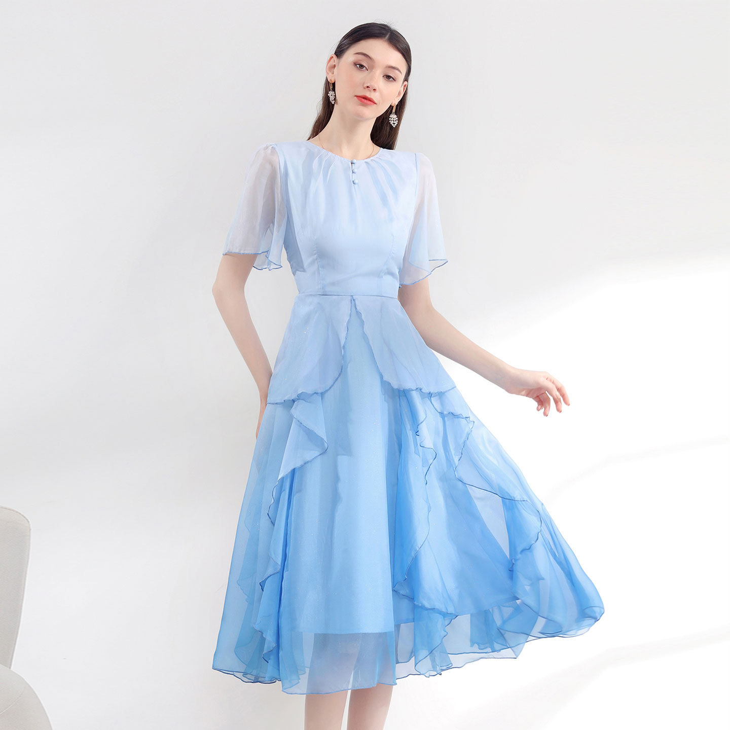 【风迷福利】雪纺连衣裙女夏2026新款长裙修身显瘦短袖高级感裙子