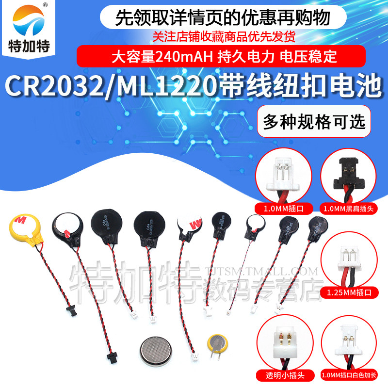 CR2032 3V纽扣CMOS笔记本BIOS台式主板电池带线1.0/1.25MM ML1220