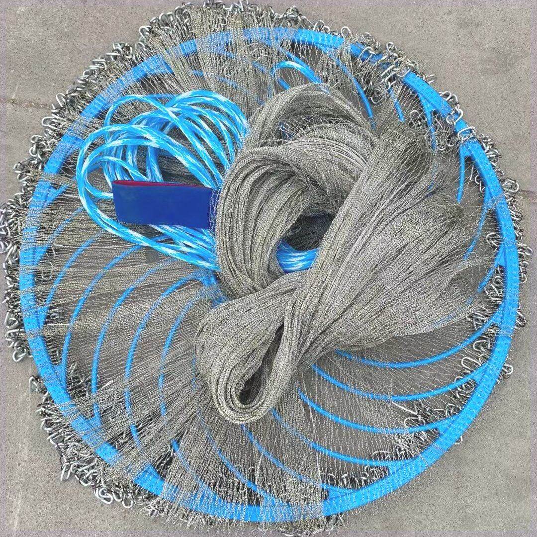 纯手工大力马线飞盘式撒网手撒网钢拉丝大飞盘手抛网抛网传统撒网