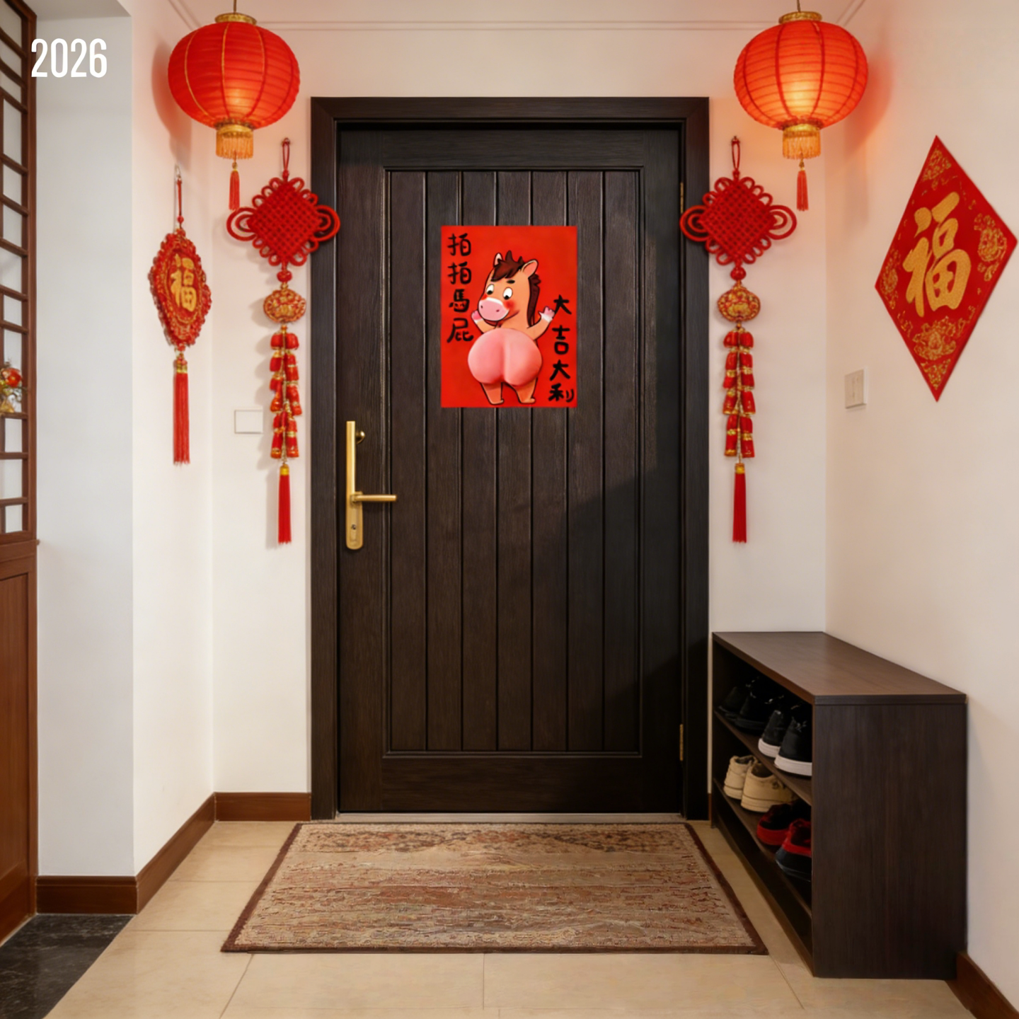 2026年新年创意拍拍马屁对联3D立体过年入户家用福字门贴搞笑装饰
