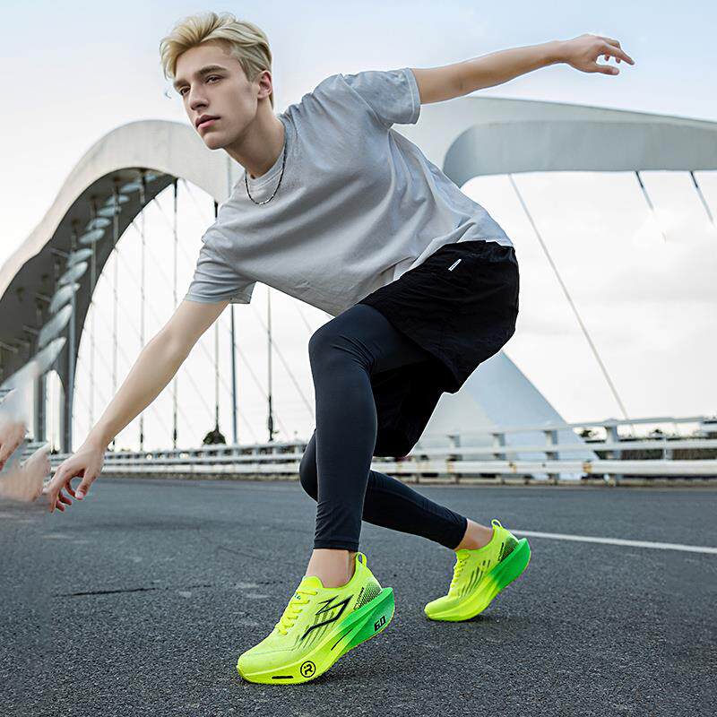 碳板跑鞋耐磨运动鞋青少年学生专业竞速跑步鞋冬季科技防滑荧光绿