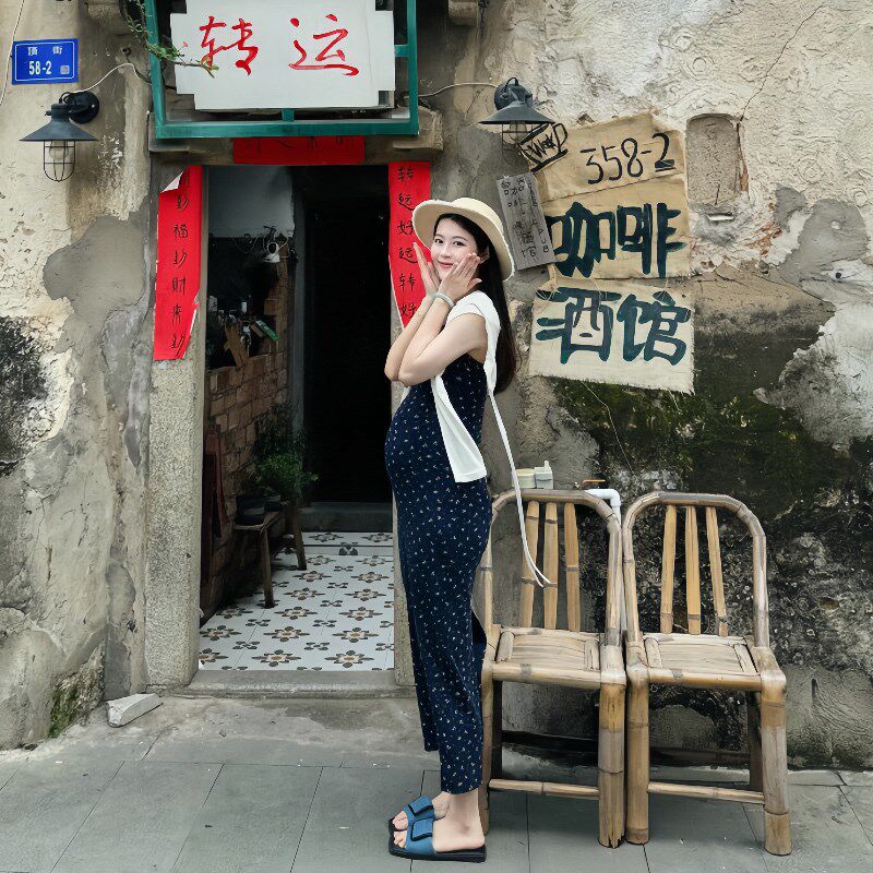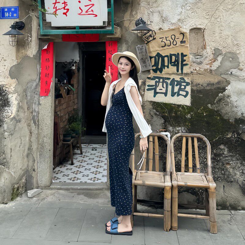 小个子孕妇吊带连衣裙套装夏季新款D防晒白色开衫外搭中长款度假