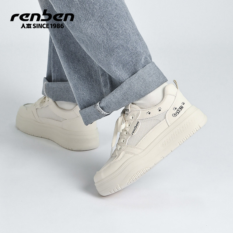 人本网面小白鞋女款板鞋2026春夏季新款透气薄款休闲运动厚底女鞋