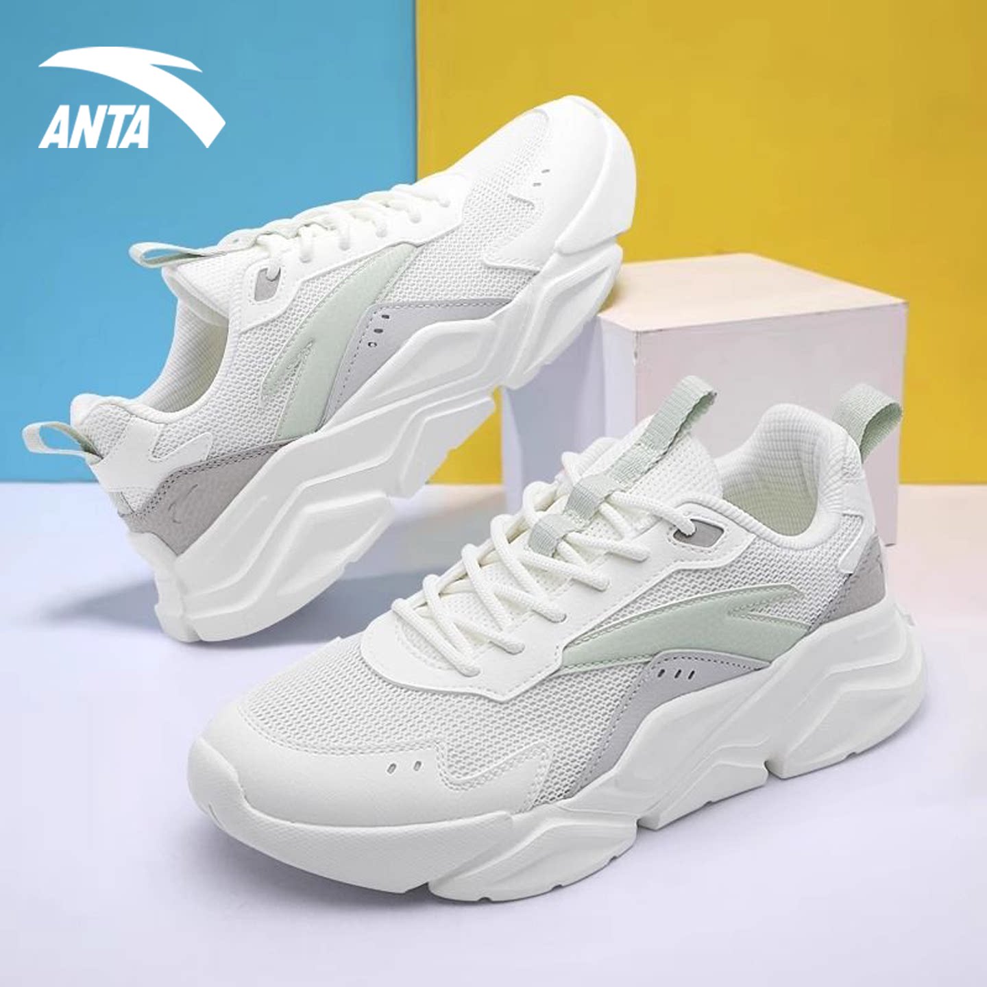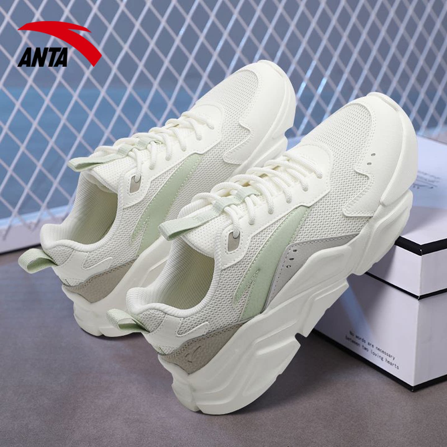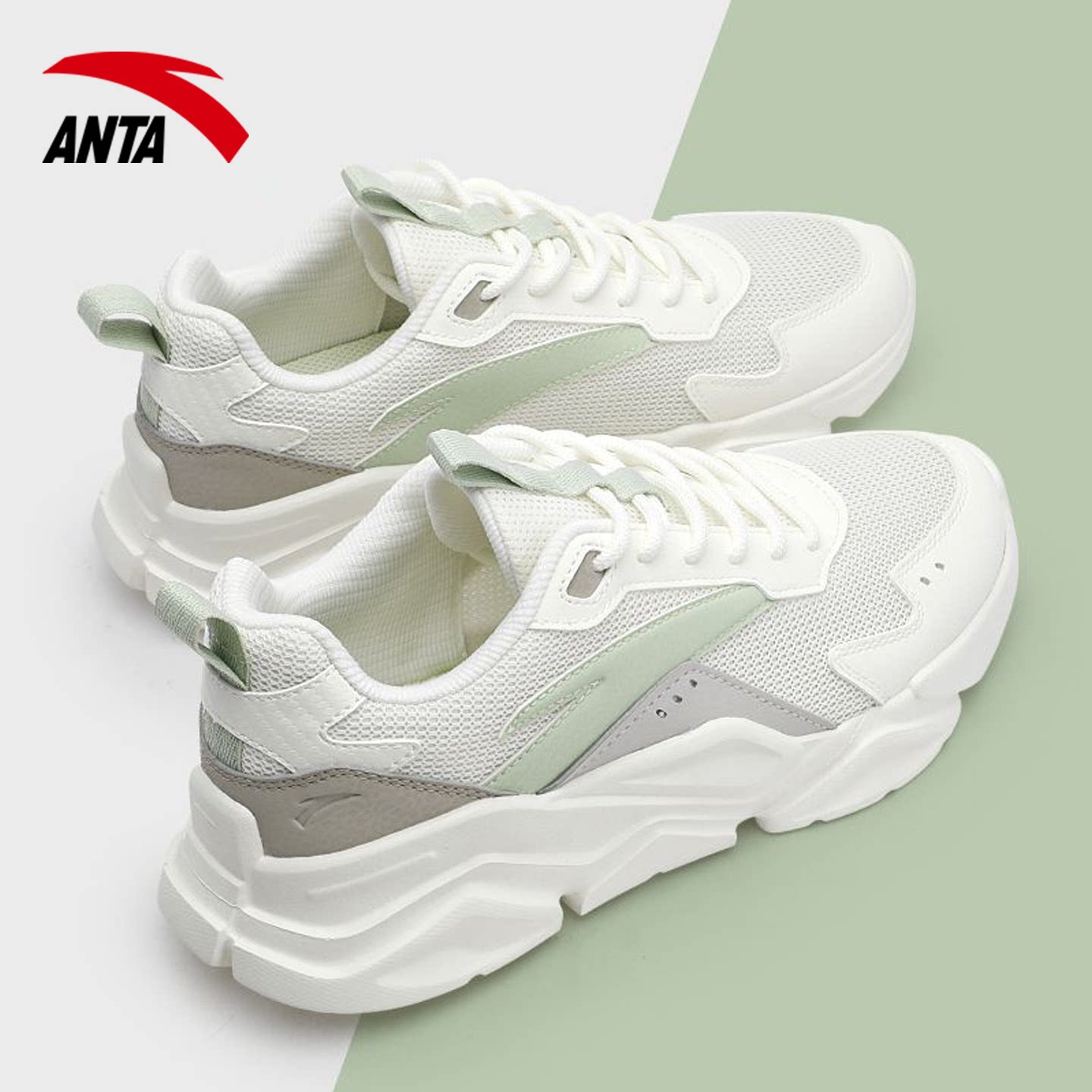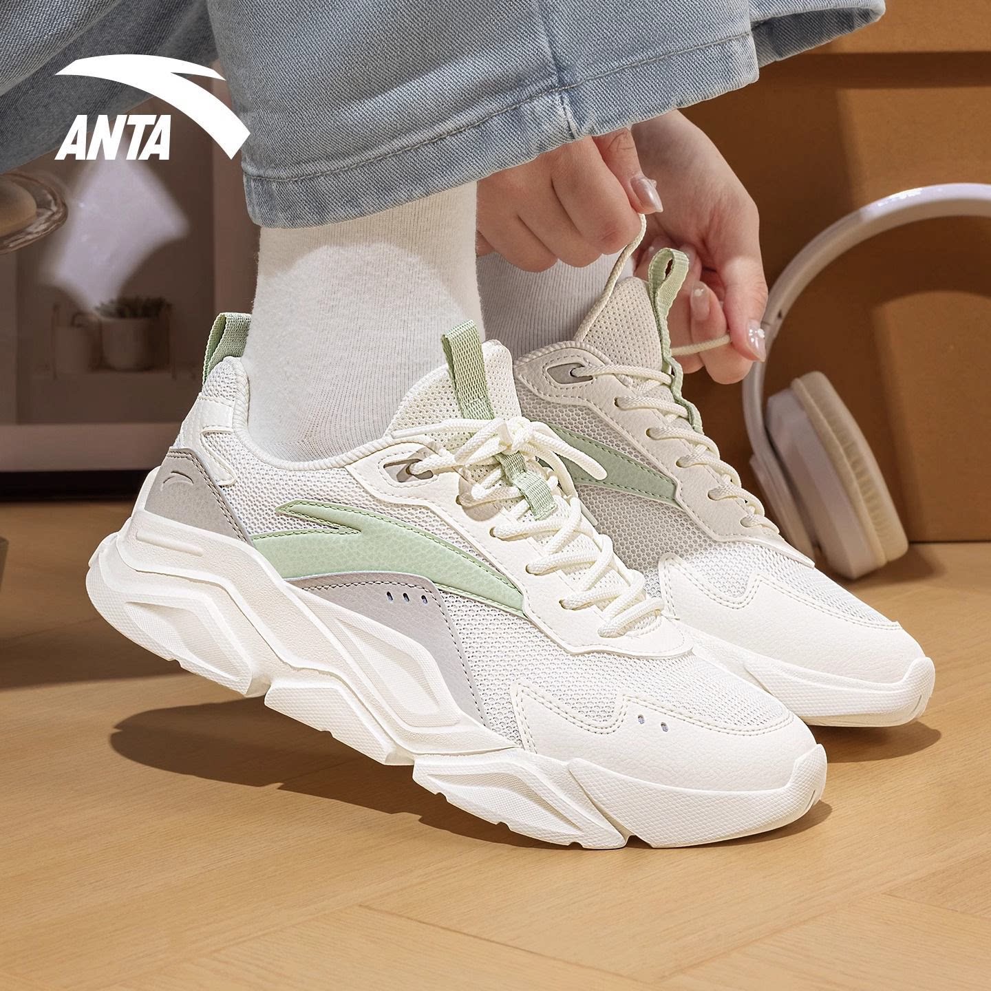 安踏运动鞋女2026春季新官方网面透气跑步老爹鞋初中生女款休闲鞋