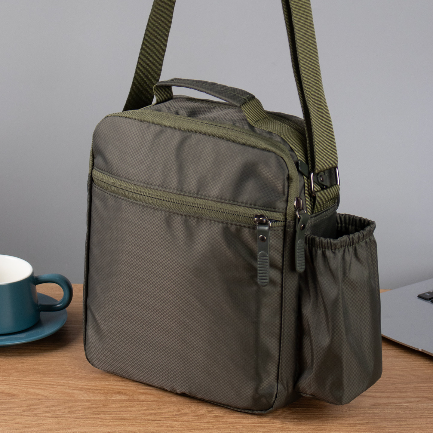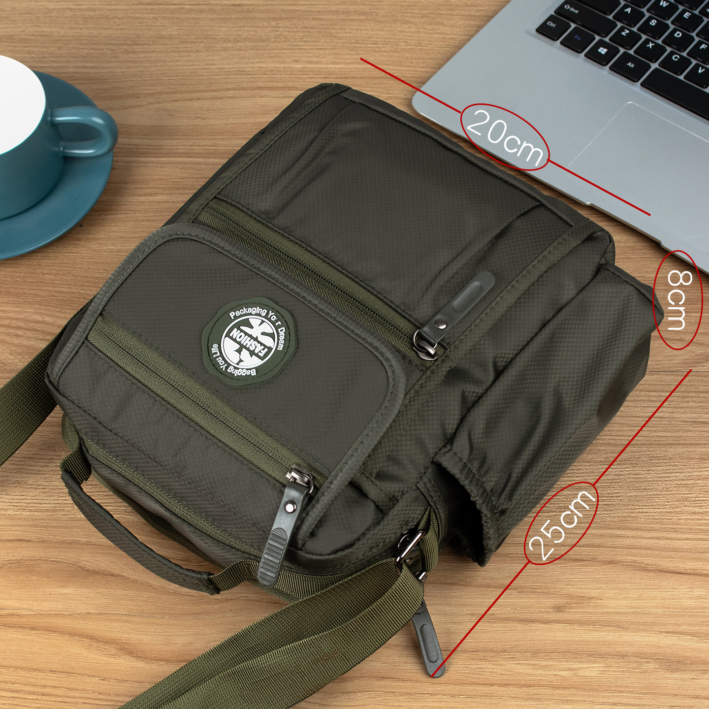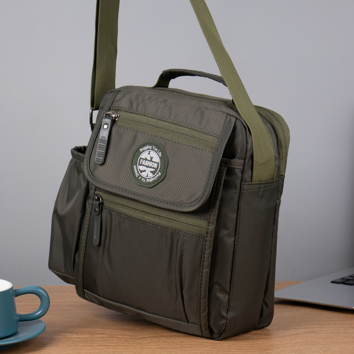 单肩包男款休闲斜挎包男士多层背包轻便大容量牛津布通勤包竖款包