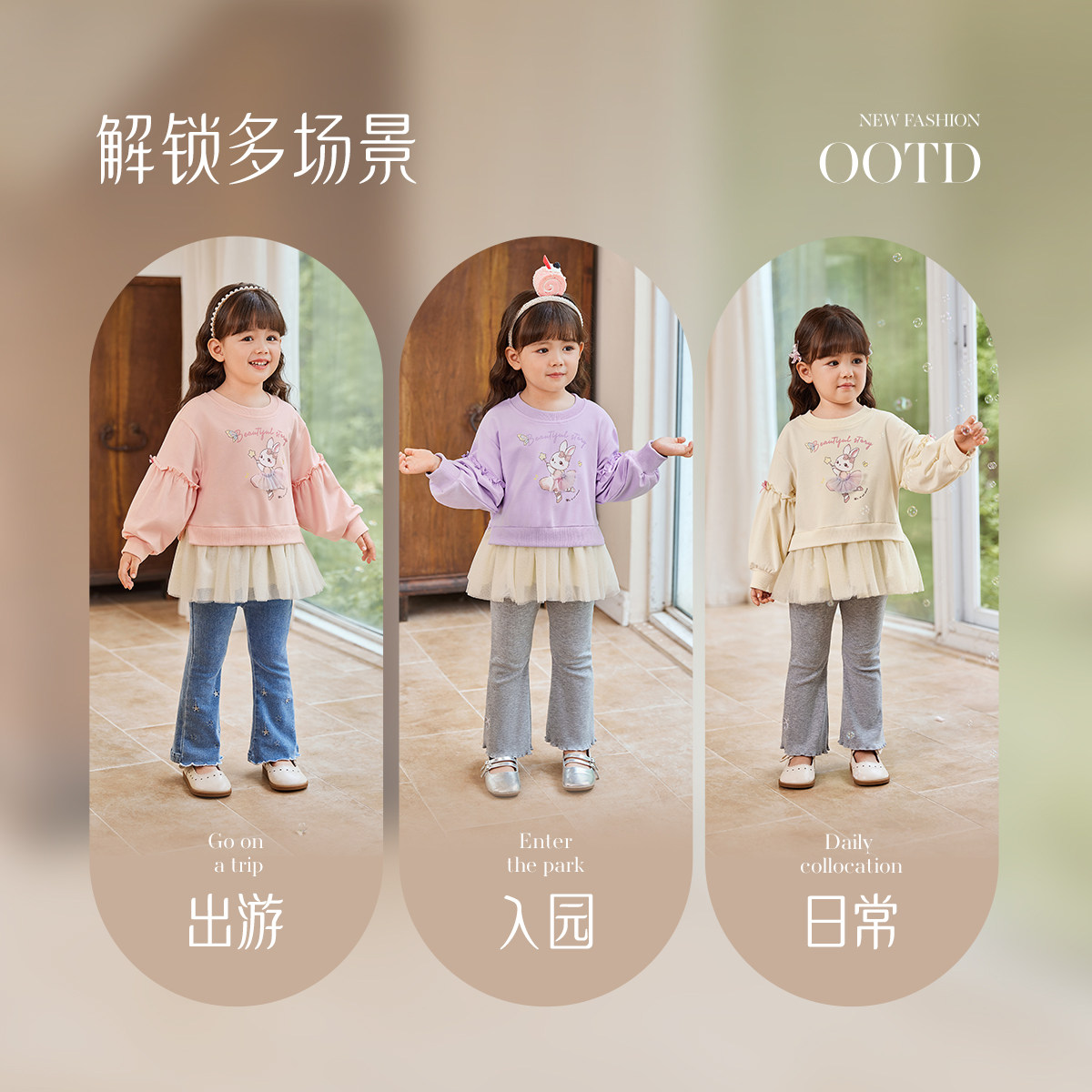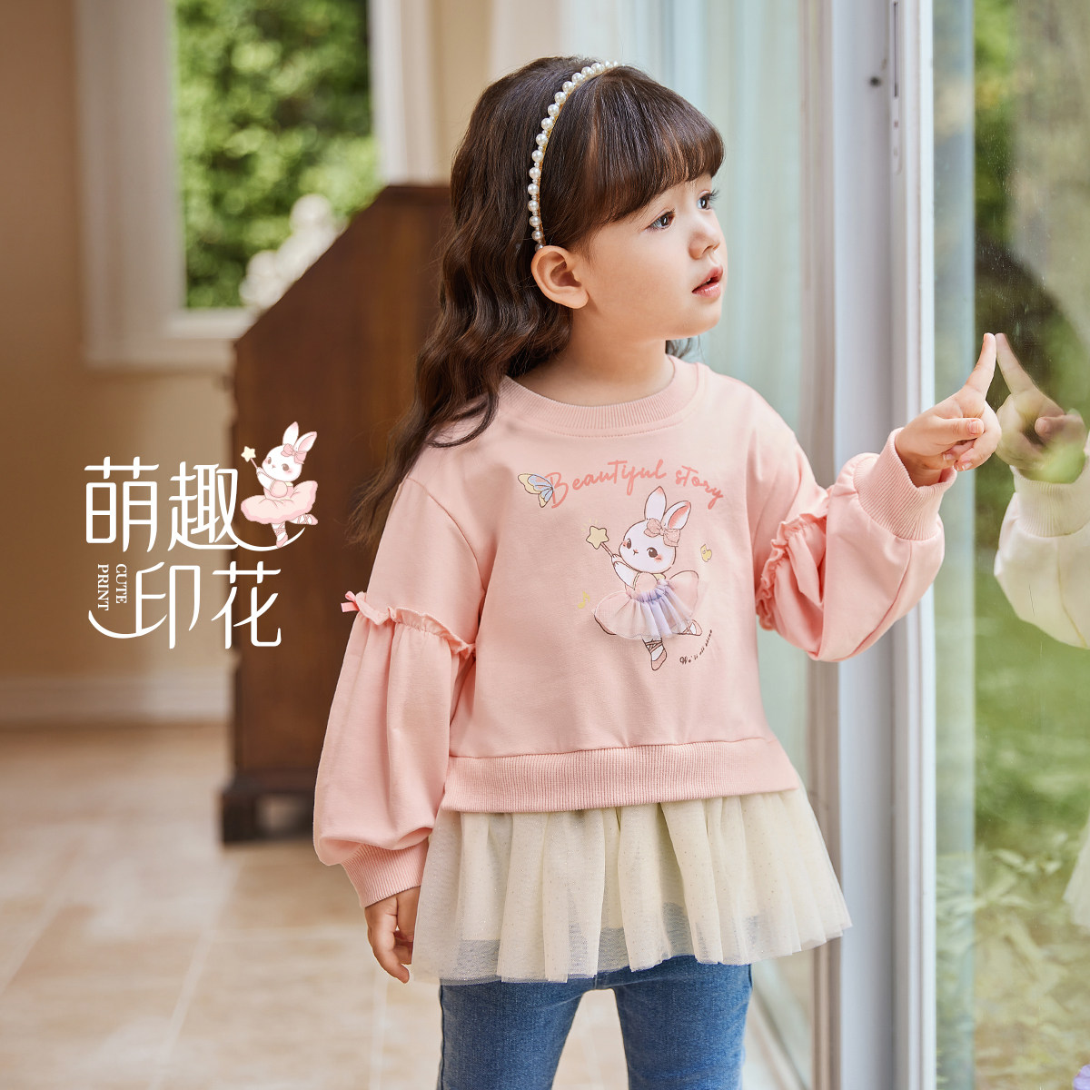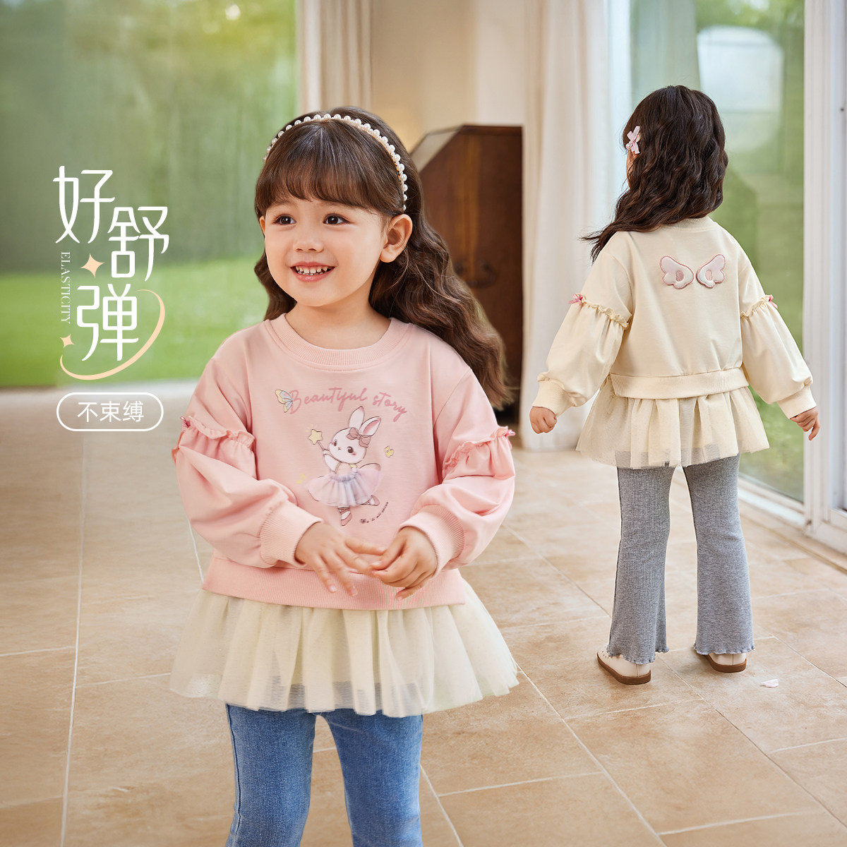 [7A抗菌]女童卫衣宝宝春季洋气纱裙拼接上衣儿童衣服2026新款女孩