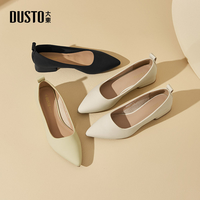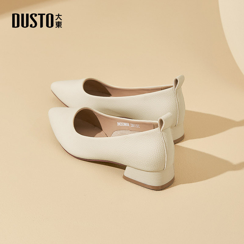 大东dd单鞋尖头女鞋2026春季新款法式气质百搭粗跟浅口软皮小皮鞋