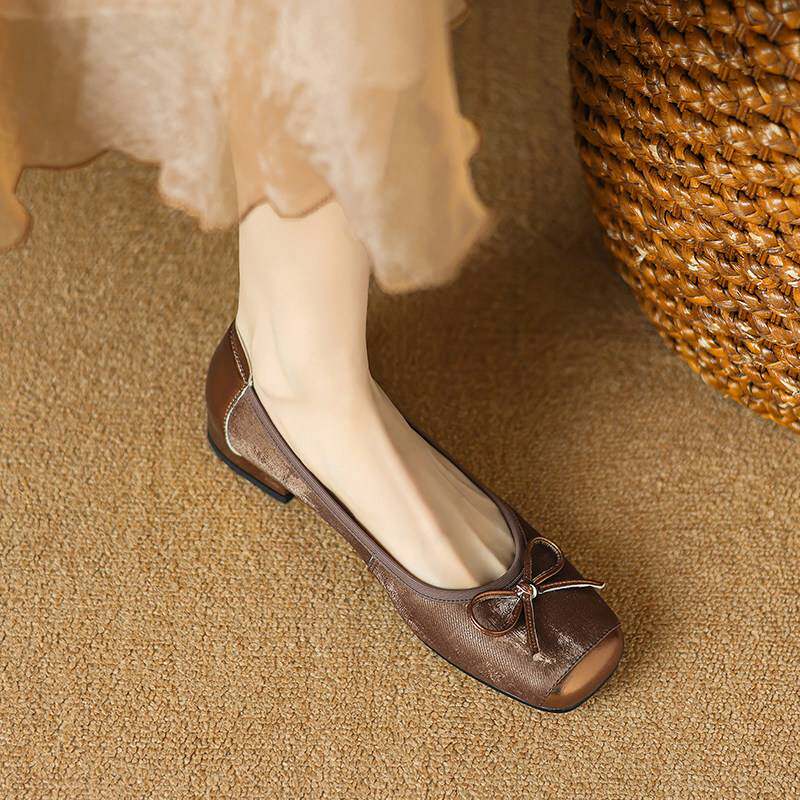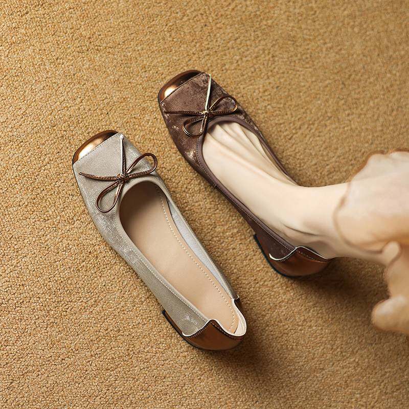 低跟女鞋单鞋女瓢鞋蝴蝶结真皮平底鞋小码313233船鞋女大码41—43