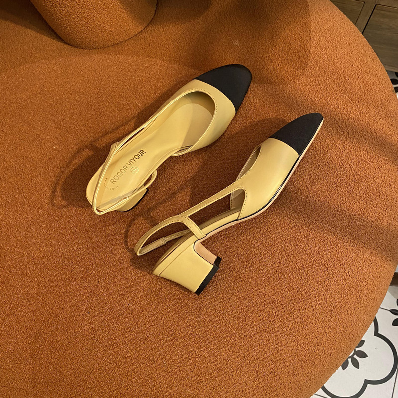 真皮小香风单鞋女2026春款百搭拼色高跟包头凉鞋粗跟裸色小香女鞋