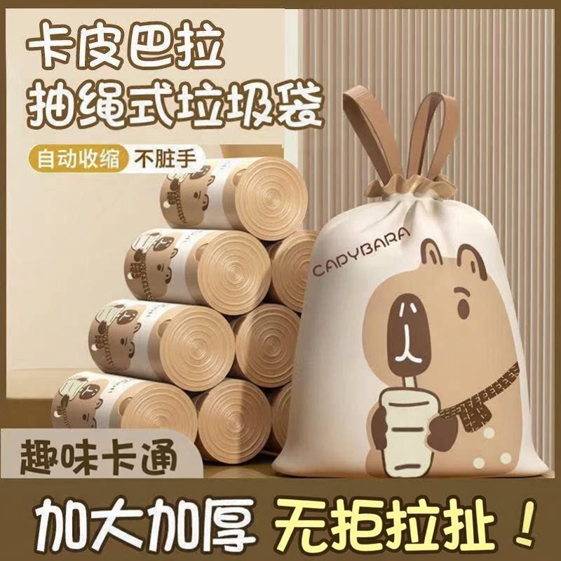 免撕抽绳垃圾袋印花加厚款手提式家用厨房办公室大卷清洁塑料袋子