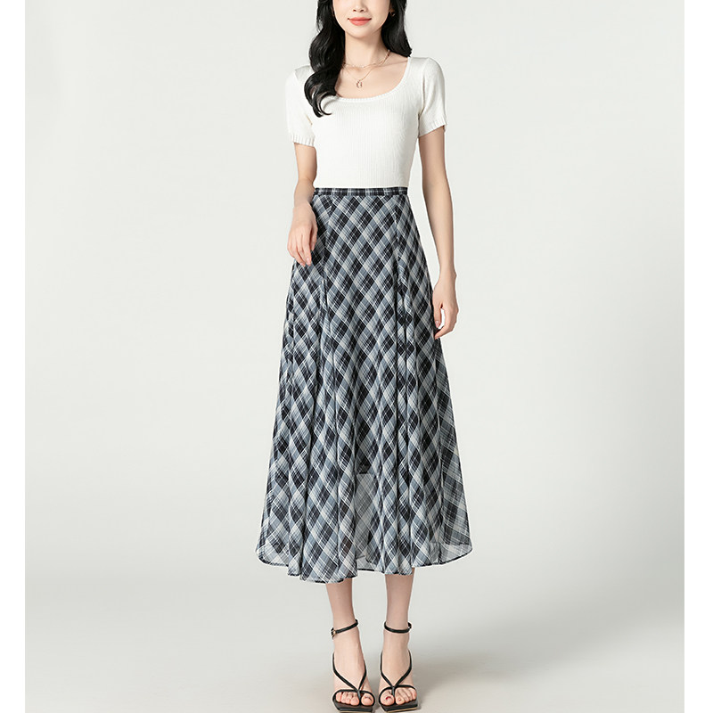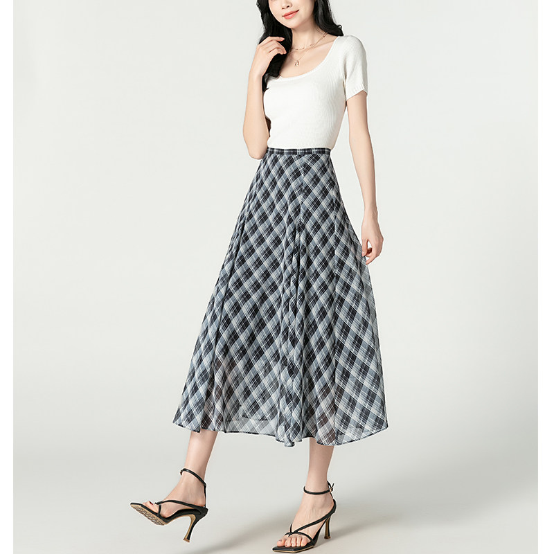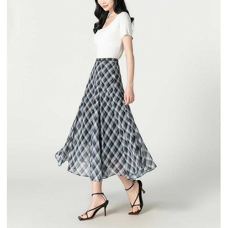 夏季遮肉显瘦雪纺半身裙女2026新款黑白格纹半身裙女高腰半身裙女