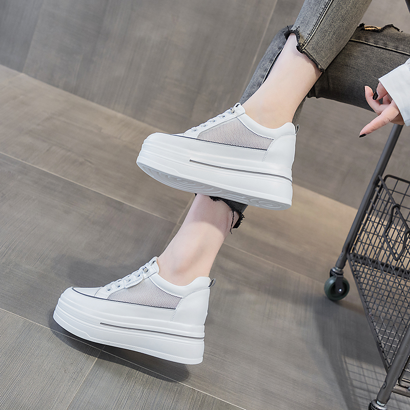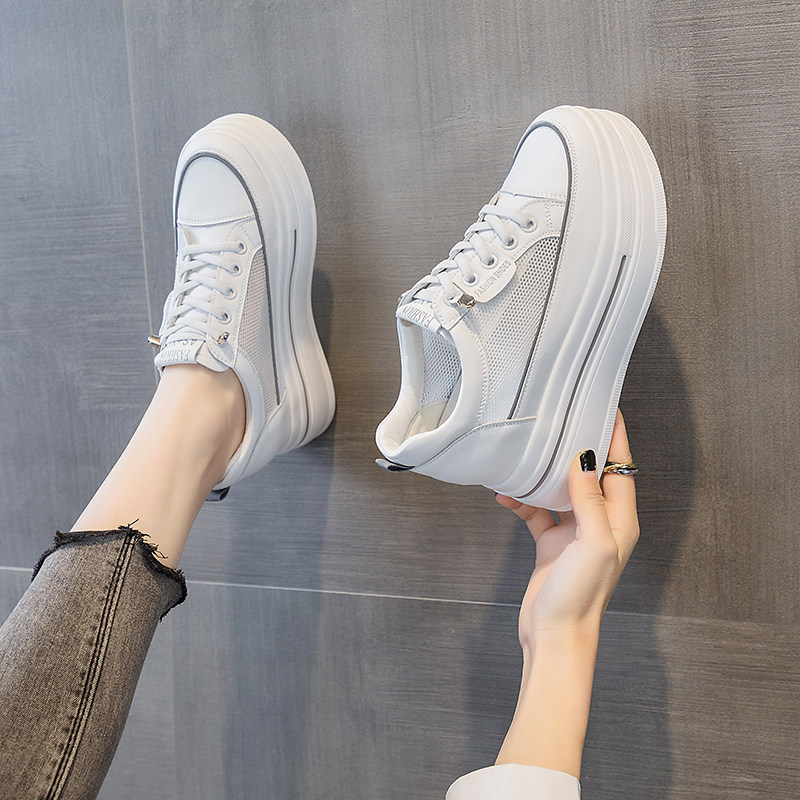 内增高女鞋2025年夏季新款网鞋女网面透气松糕厚底板鞋小白鞋小码