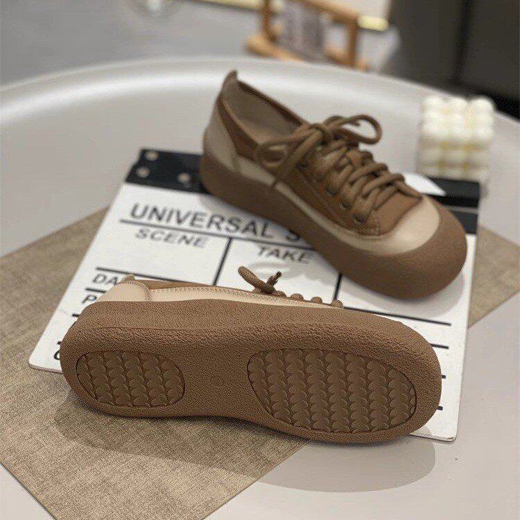爆款厚底单鞋女春夏休闲女鞋2025系带板鞋时尚复古文艺百搭鞋女