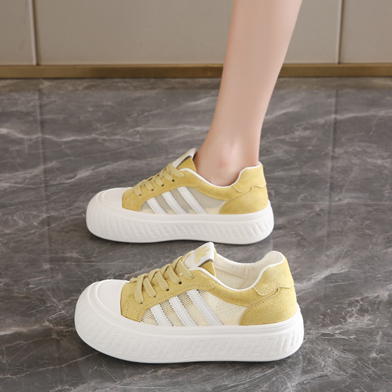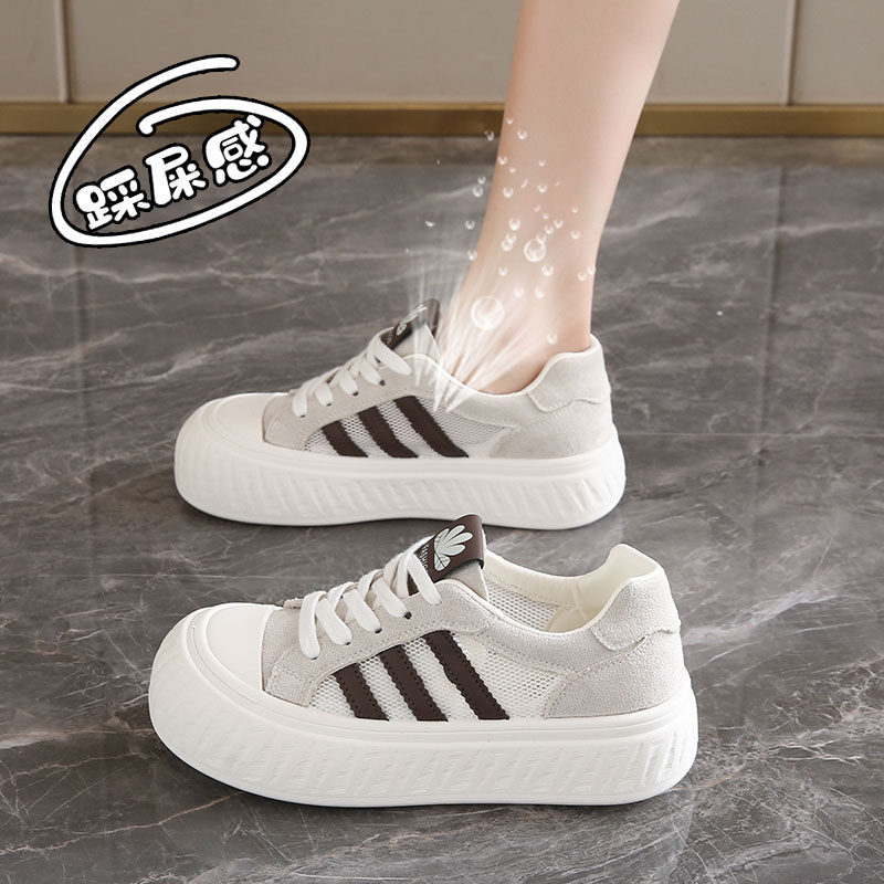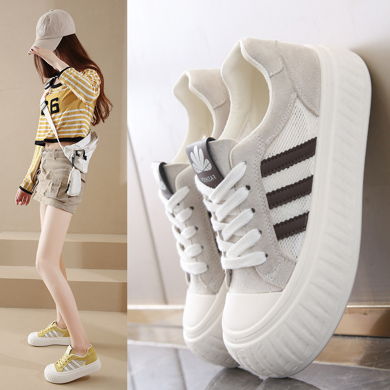 6CM内增高小白鞋女夏季新款网面薄款透气配裙子休闲厚底板鞋34码