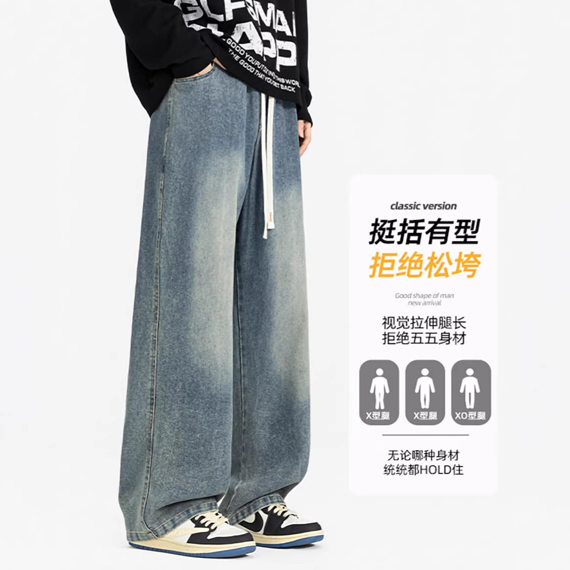 2026春季新款男士牛仔裤男款直筒宽松潮牌大码裤子男裤基础款长裤