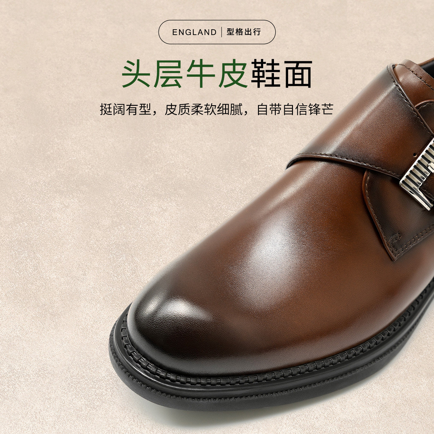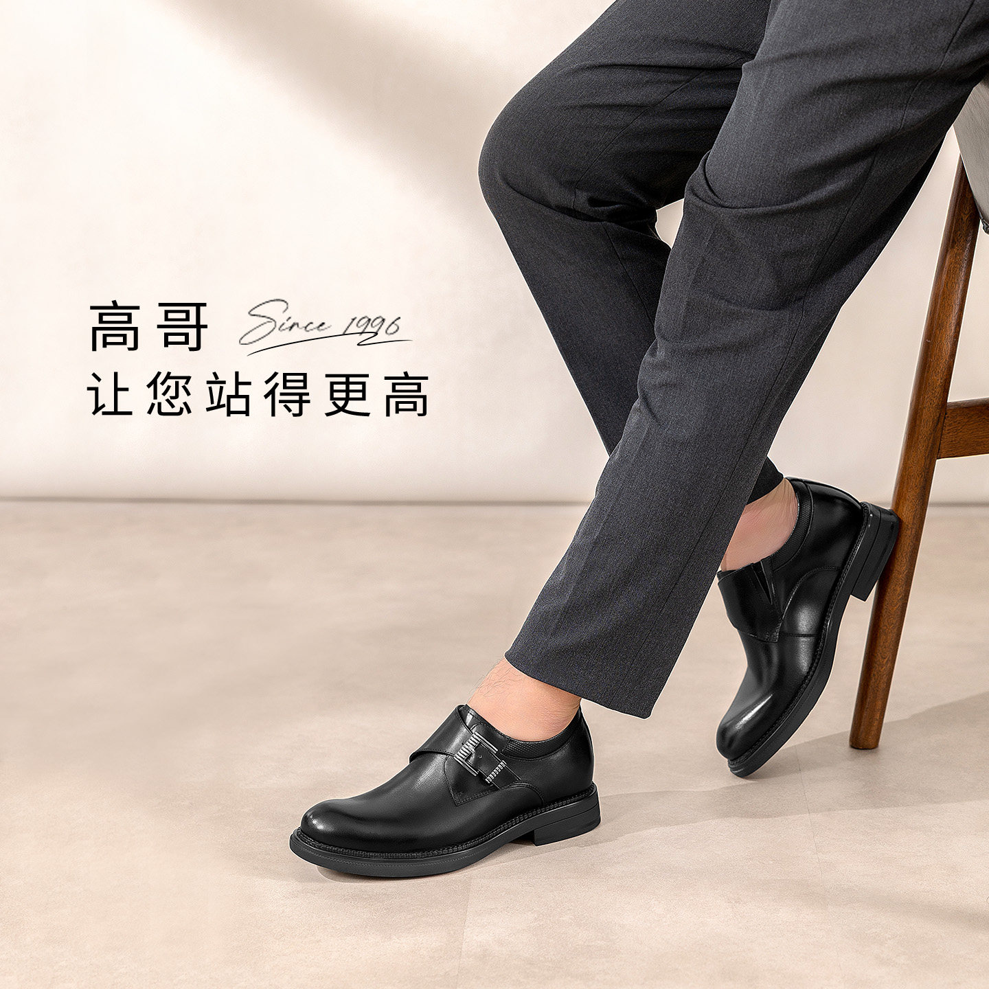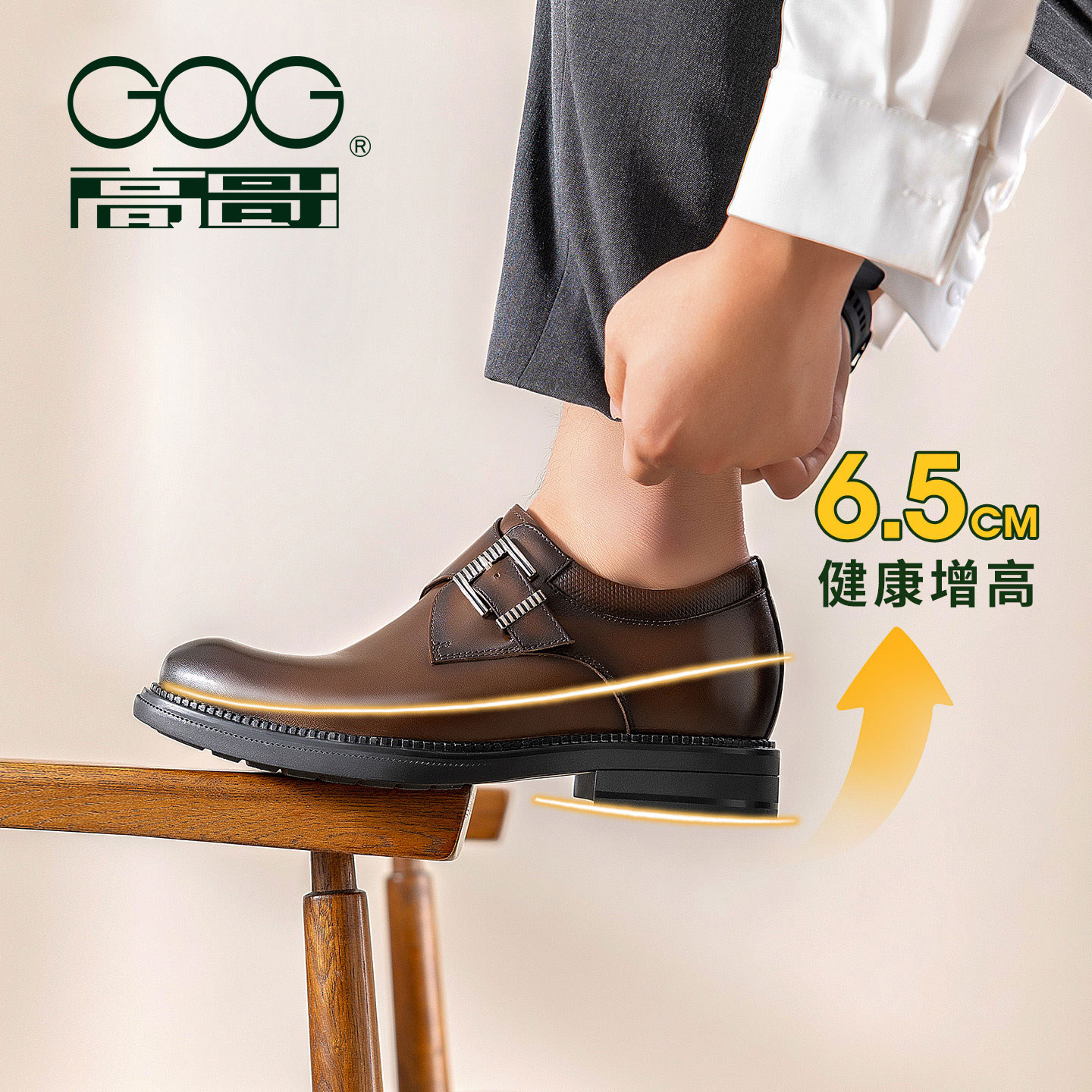 高哥增高皮鞋商务正装鞋子春季头层牛皮男鞋新款内增高孟克鞋男