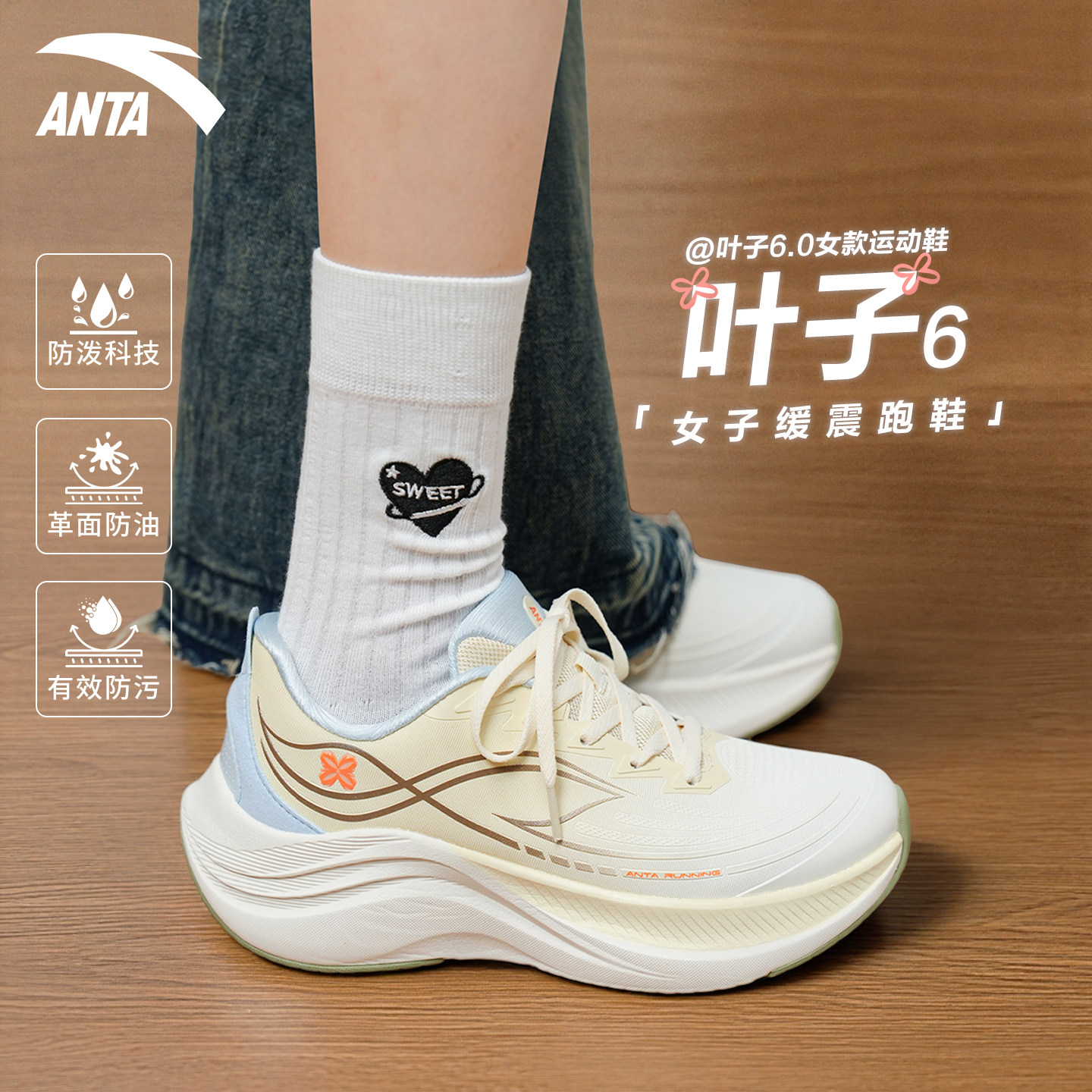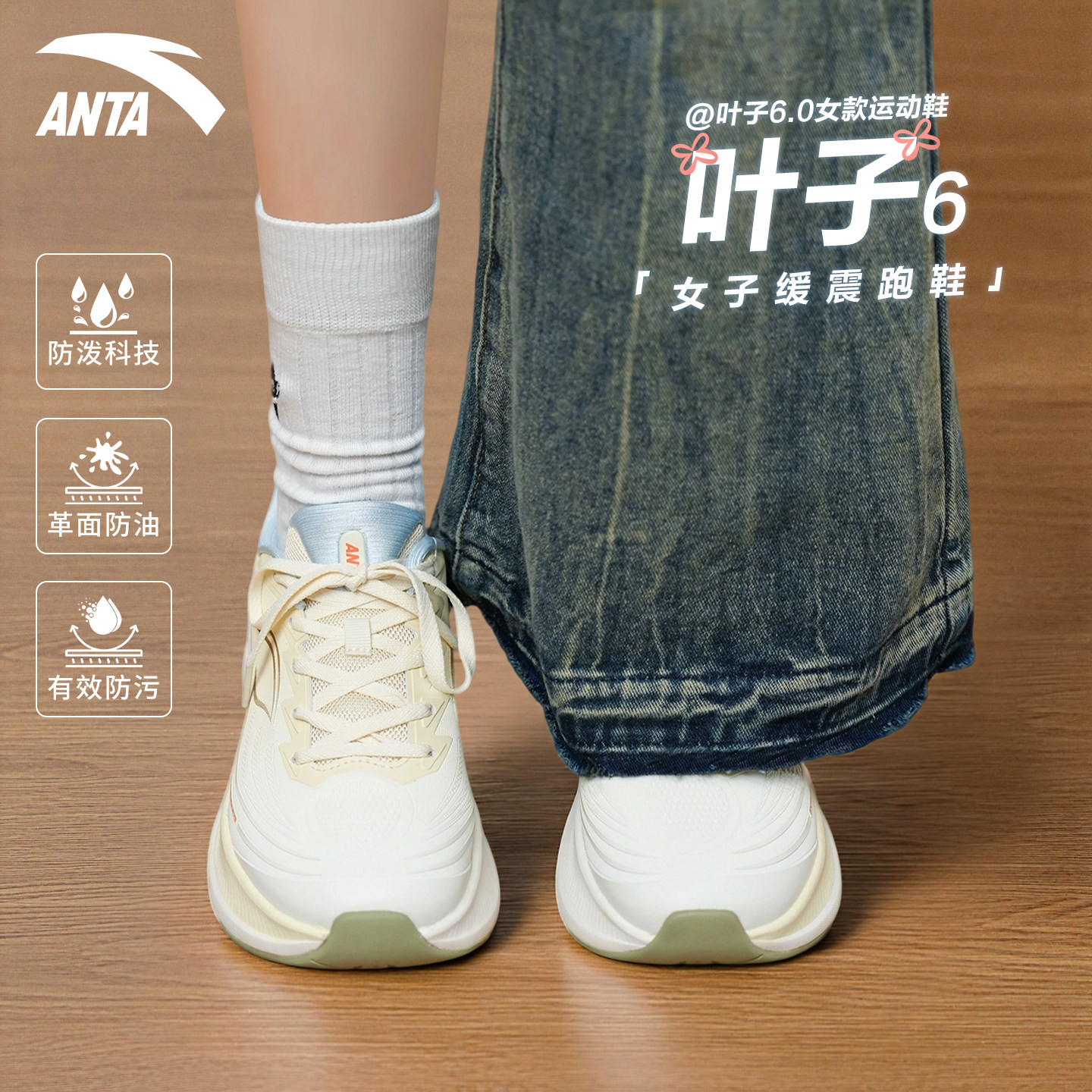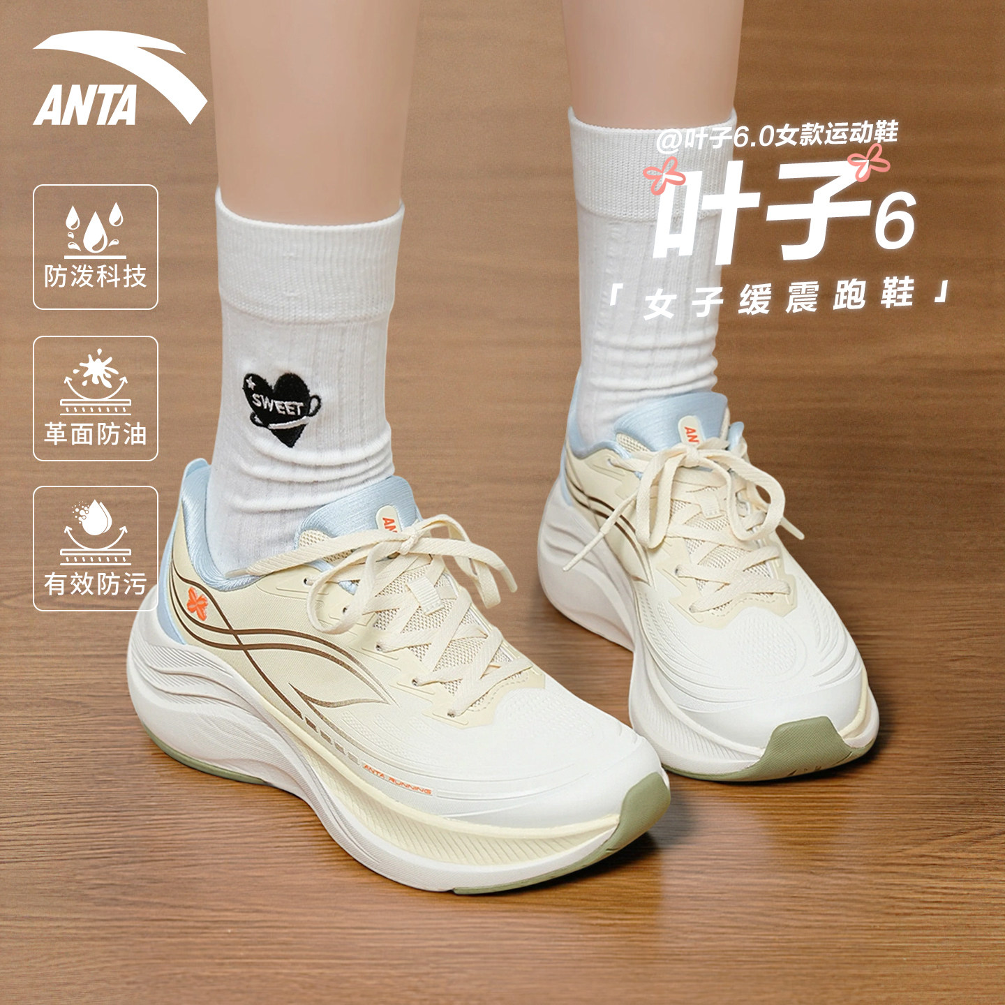 安踏叶子6女鞋运动鞋春季专业减震跑鞋女款鞋子皮面防泼水跑步鞋