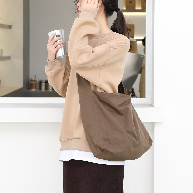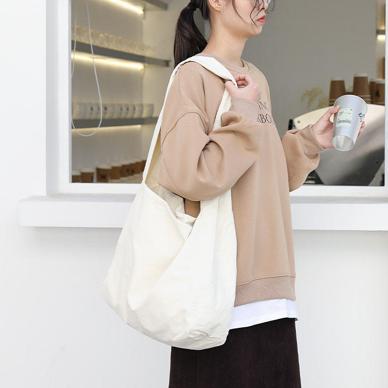 日韩新款大容量帆布托特包休闲百搭斜挎包女学生宽肩带单肩腋下包