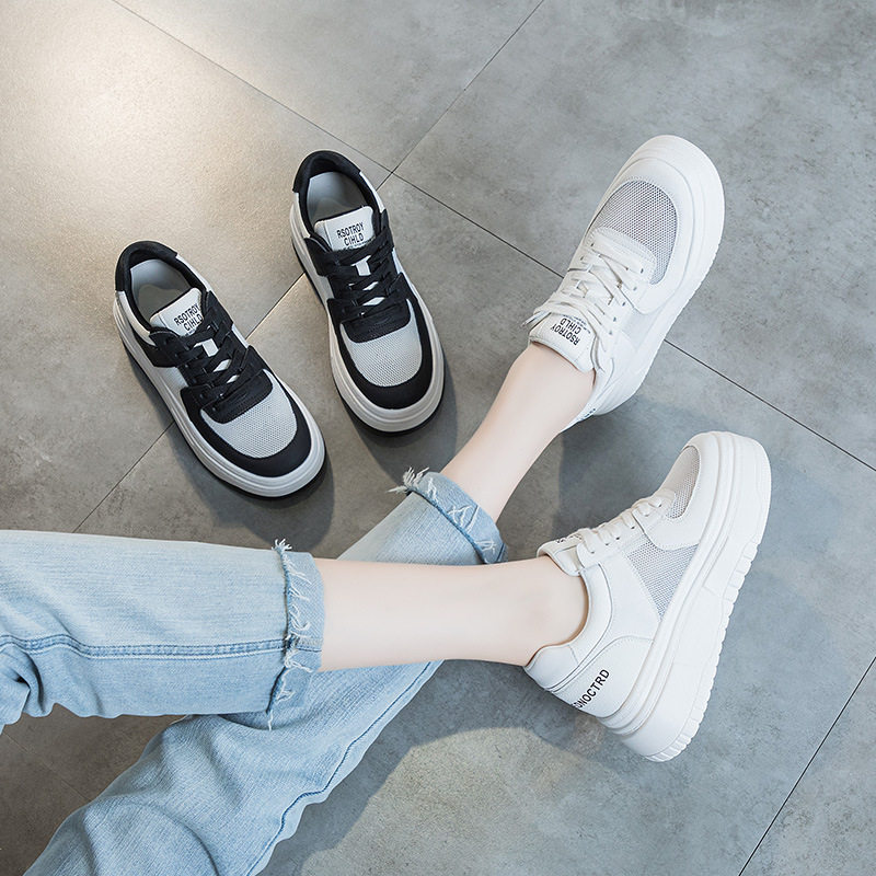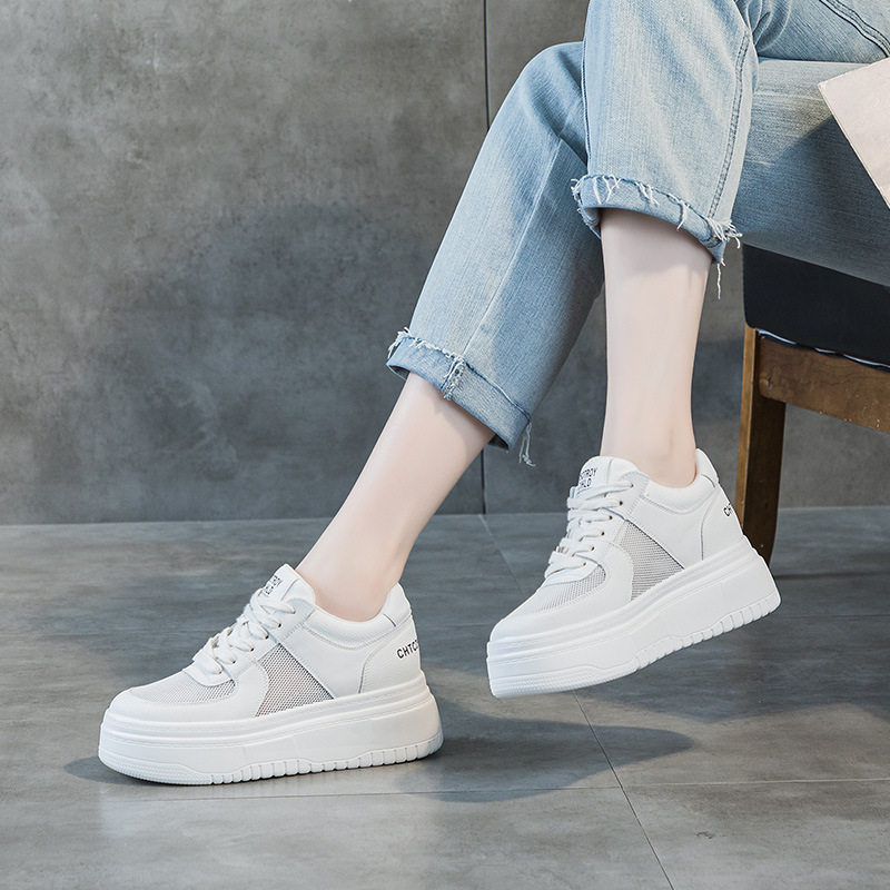 秋天内增高女鞋8cm增高厚底松糕底网面透气小个子搭配裙子的鞋子