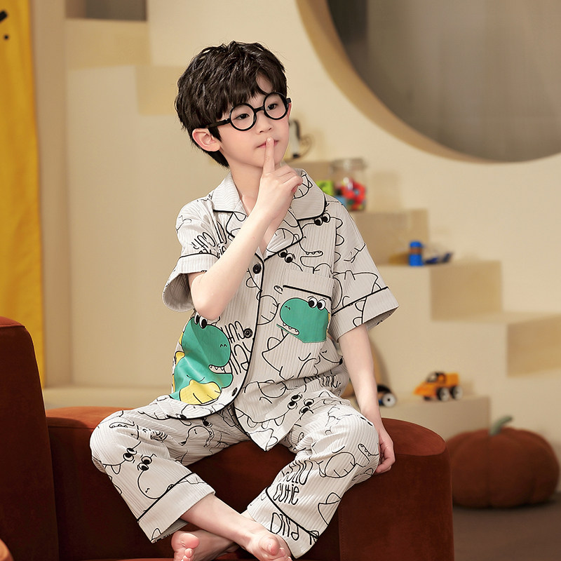 男童睡衣夏季纯棉长裤短袖宝宝春秋薄款男孩中小学生夏天透天套装