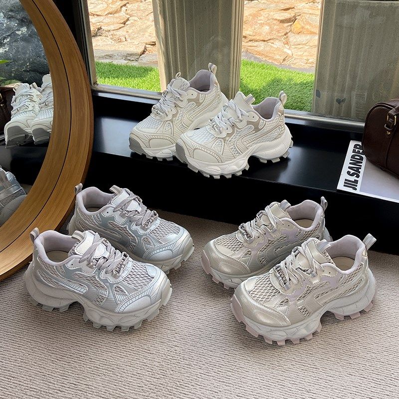 夏季女鞋老爹鞋女透气网面网鞋配阔腿裤的鞋子厚底小白鞋运动鞋潮