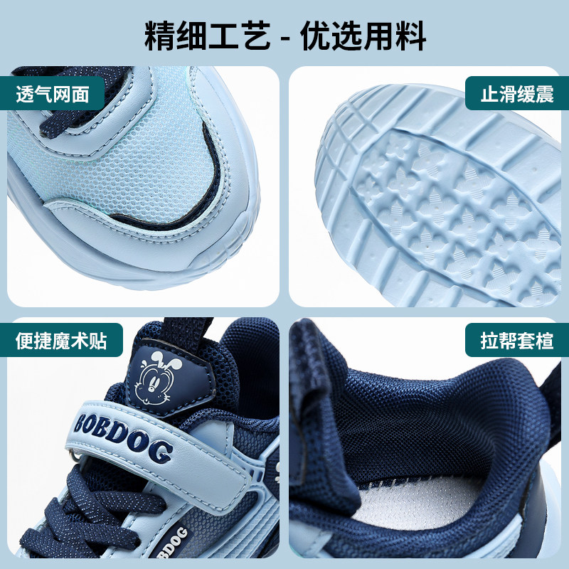 巴布豆童鞋男童运动鞋春秋款透气网面鞋子夏天镂空网中大童跑步鞋