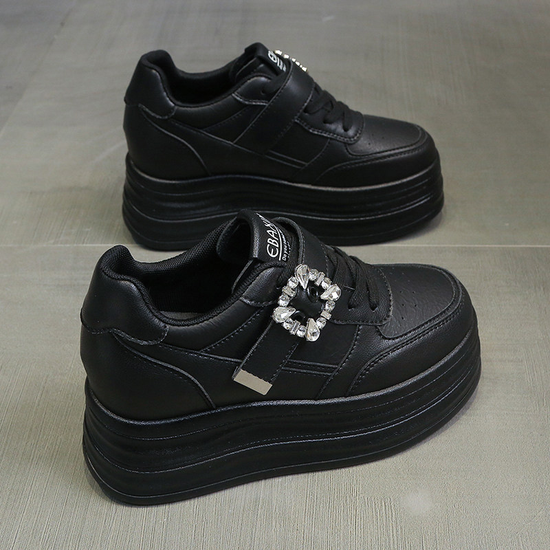 黑色板鞋8cm内增高女鞋ins小个子厚底2026新款春季休闲运动小白鞋