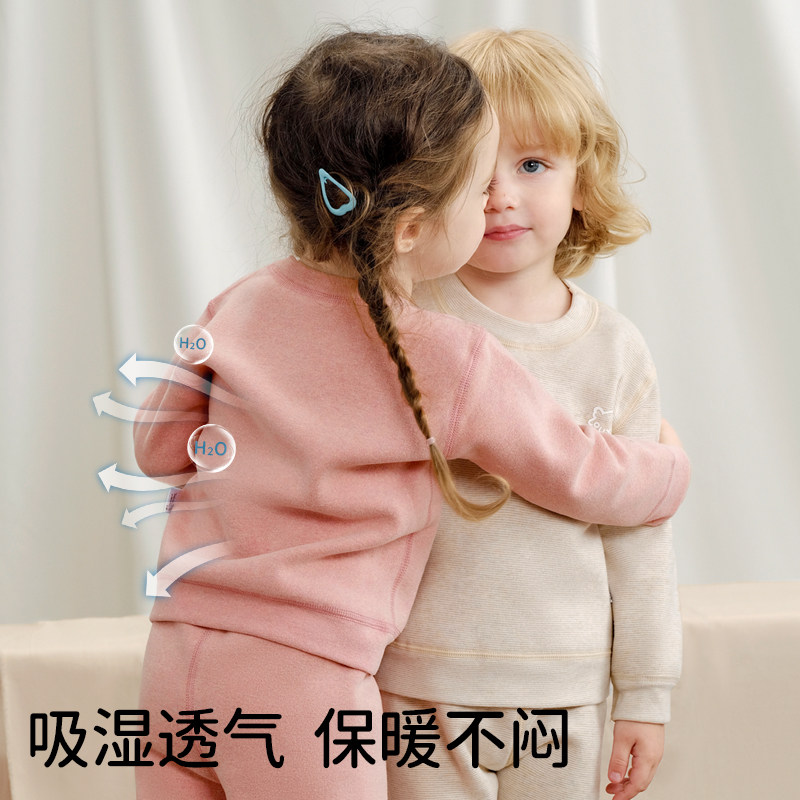 欧孕儿童保暖内衣套装宝宝加绒加厚冬季男女童圆领秋衣秋裤棉毛衫