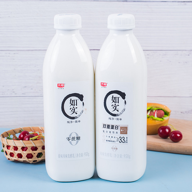 光明如实酸奶950g*2桶0蔗糖双重蛋白早餐奶风味发酵乳低温酸牛奶