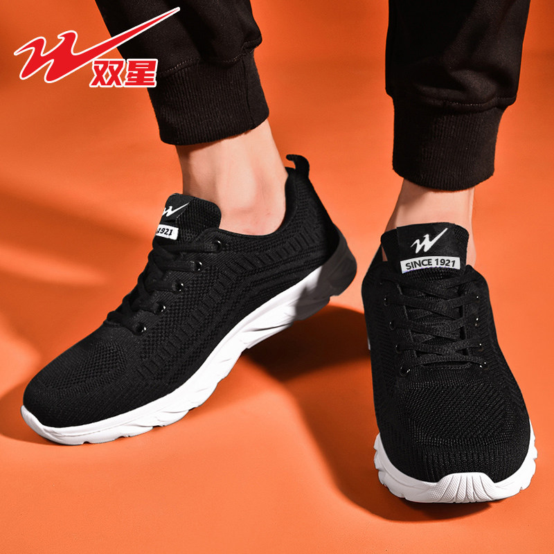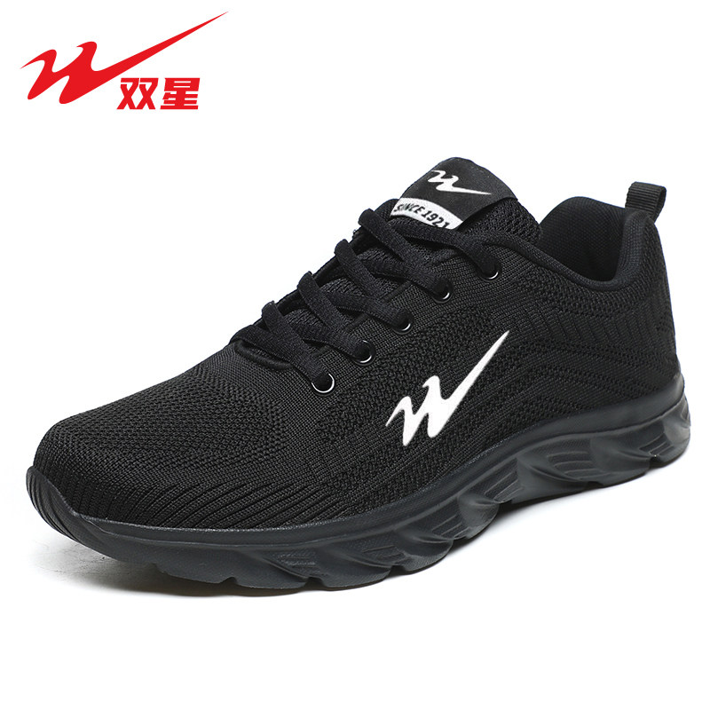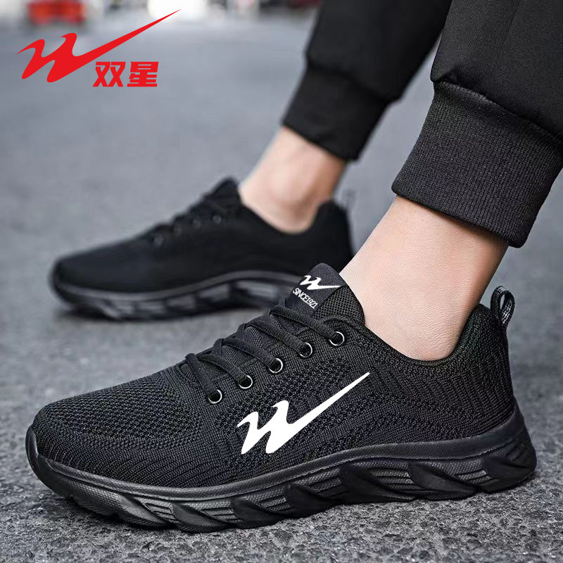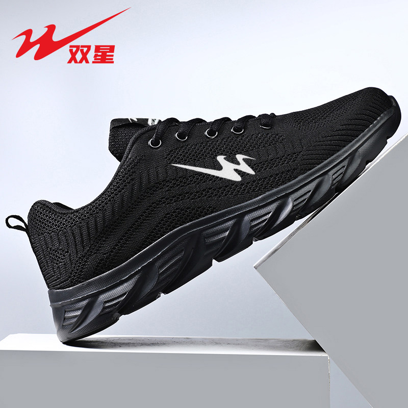双星运动鞋男鞋网面透气秋季男款网鞋软底跑步鞋男士黑色休闲鞋子