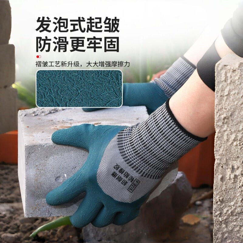 手套工作劳保耐磨防滑加厚劳动乳胶橡胶劳工防护干活工地浸胶防水