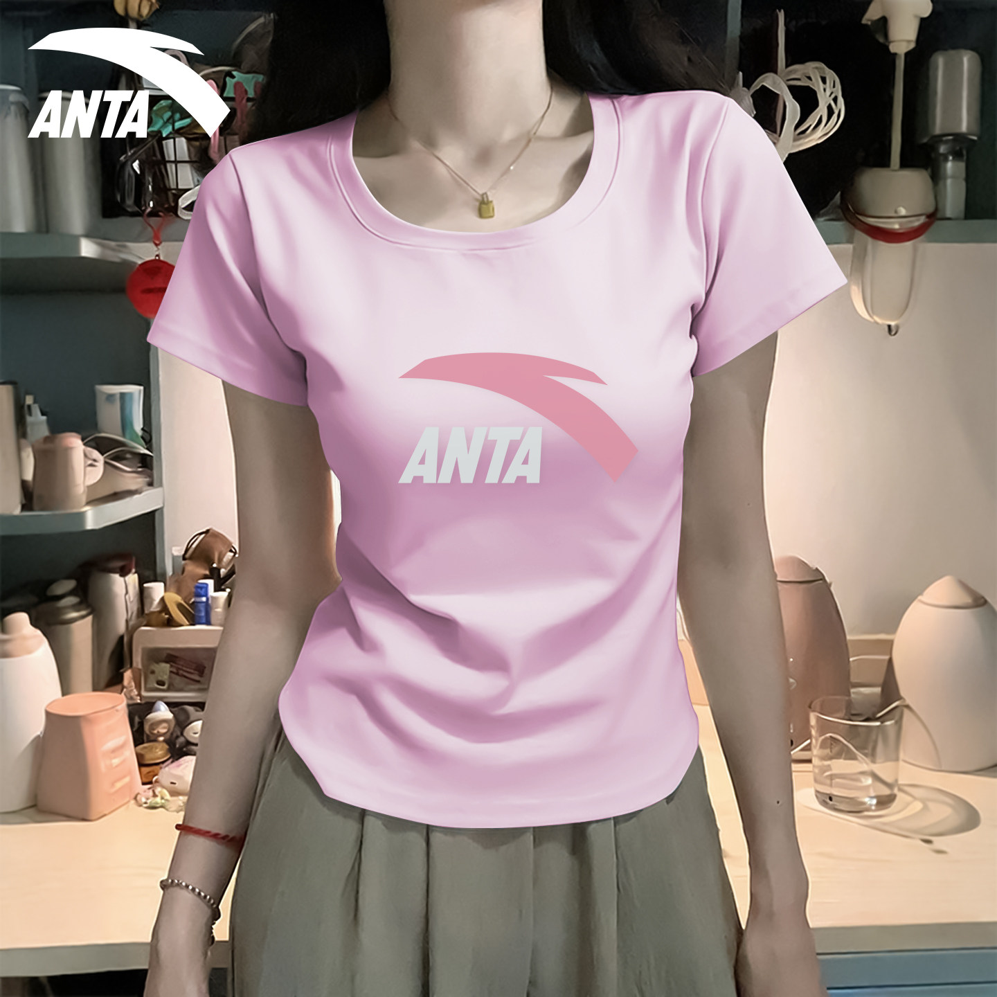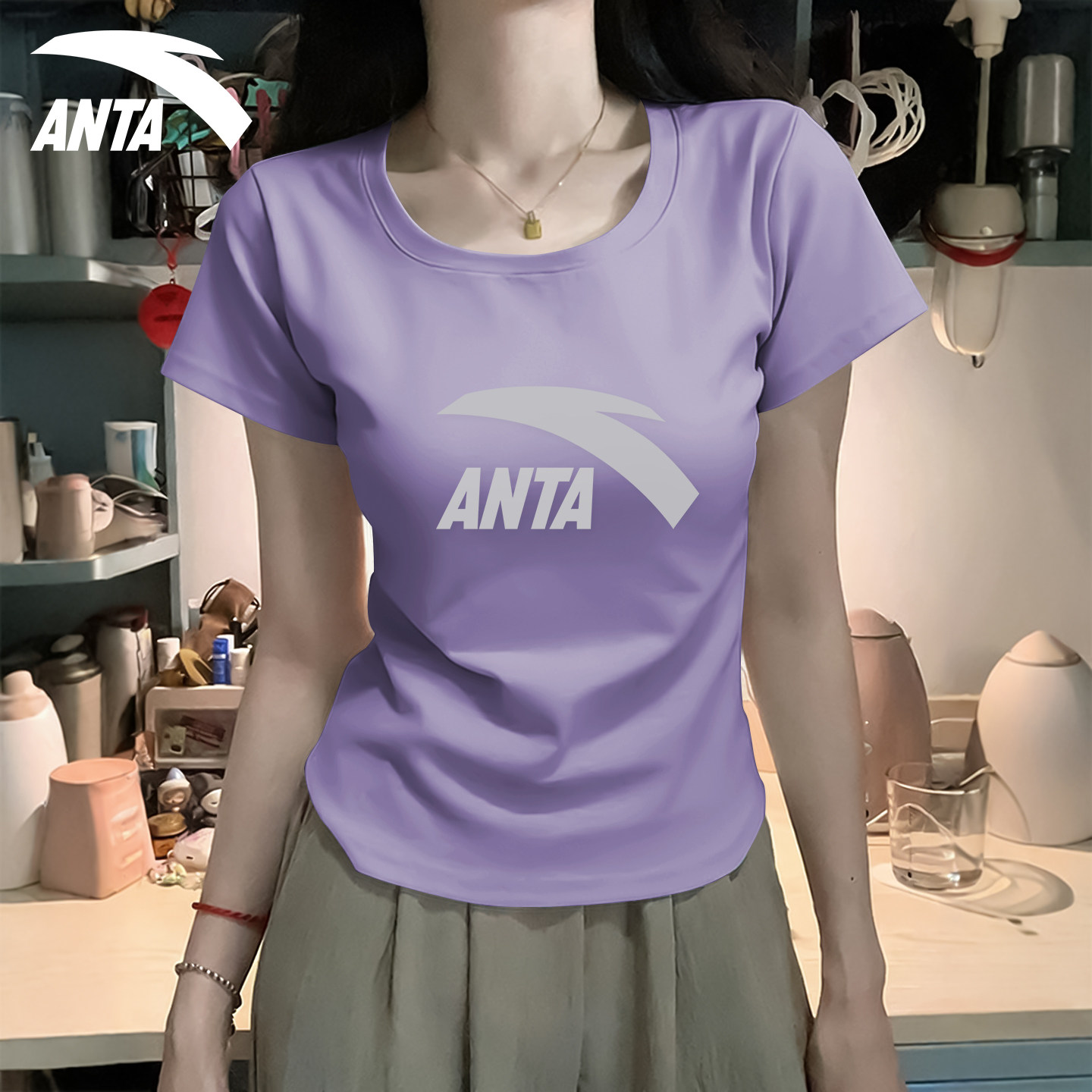 安踏短袖t恤女款夏季新款官方旗舰圆领透气修身显瘦半袖白色上衣