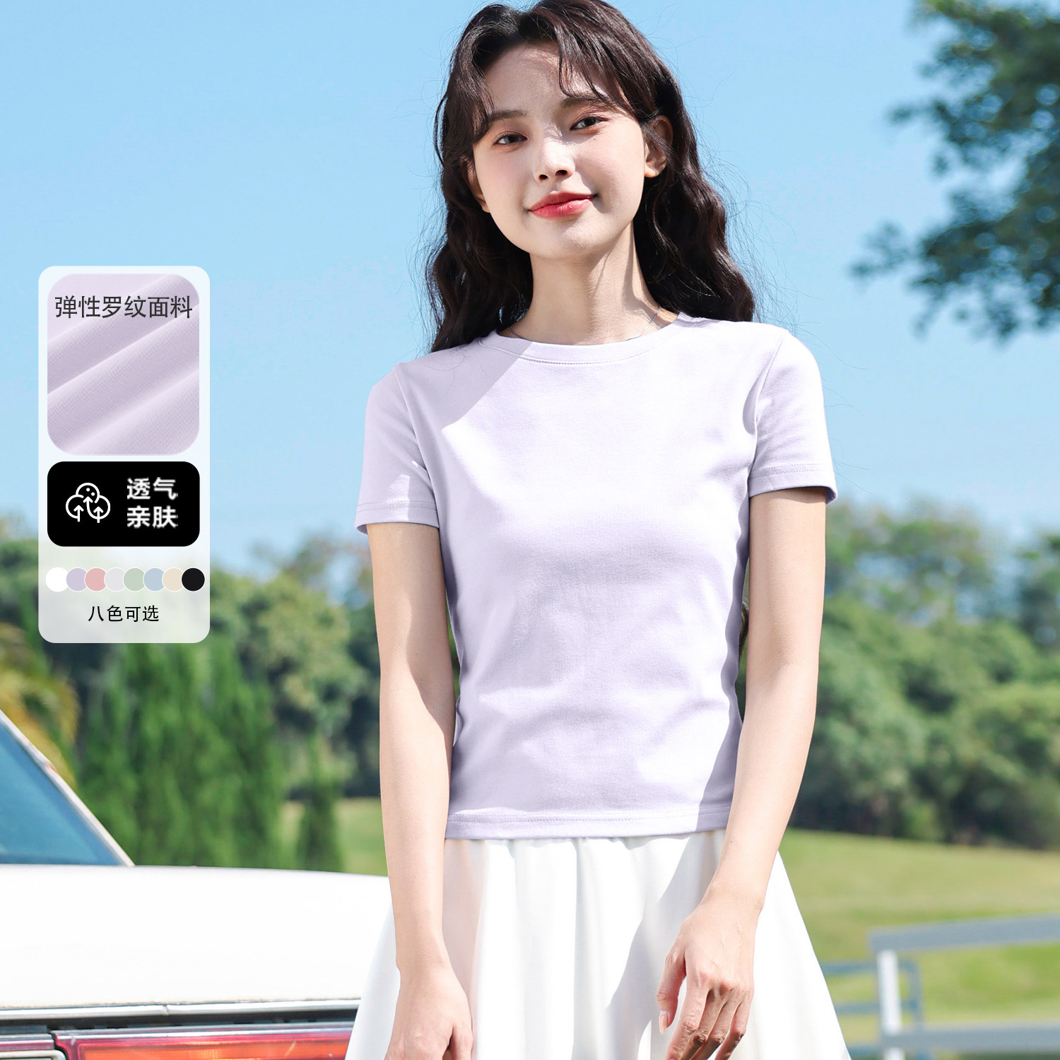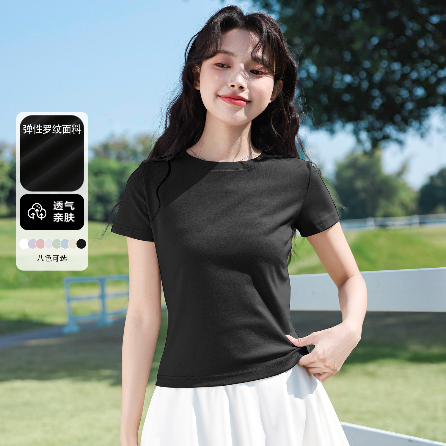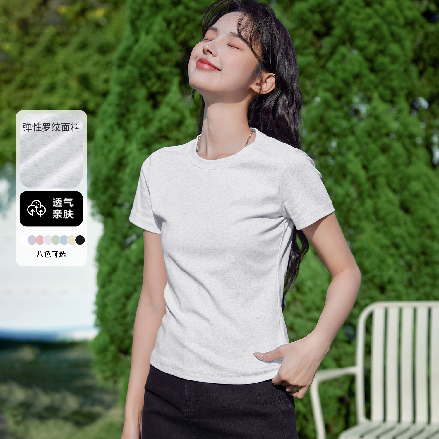 班尼路白色正肩紧身短袖T恤女款2026夏季新款高级感修身内搭上衣H