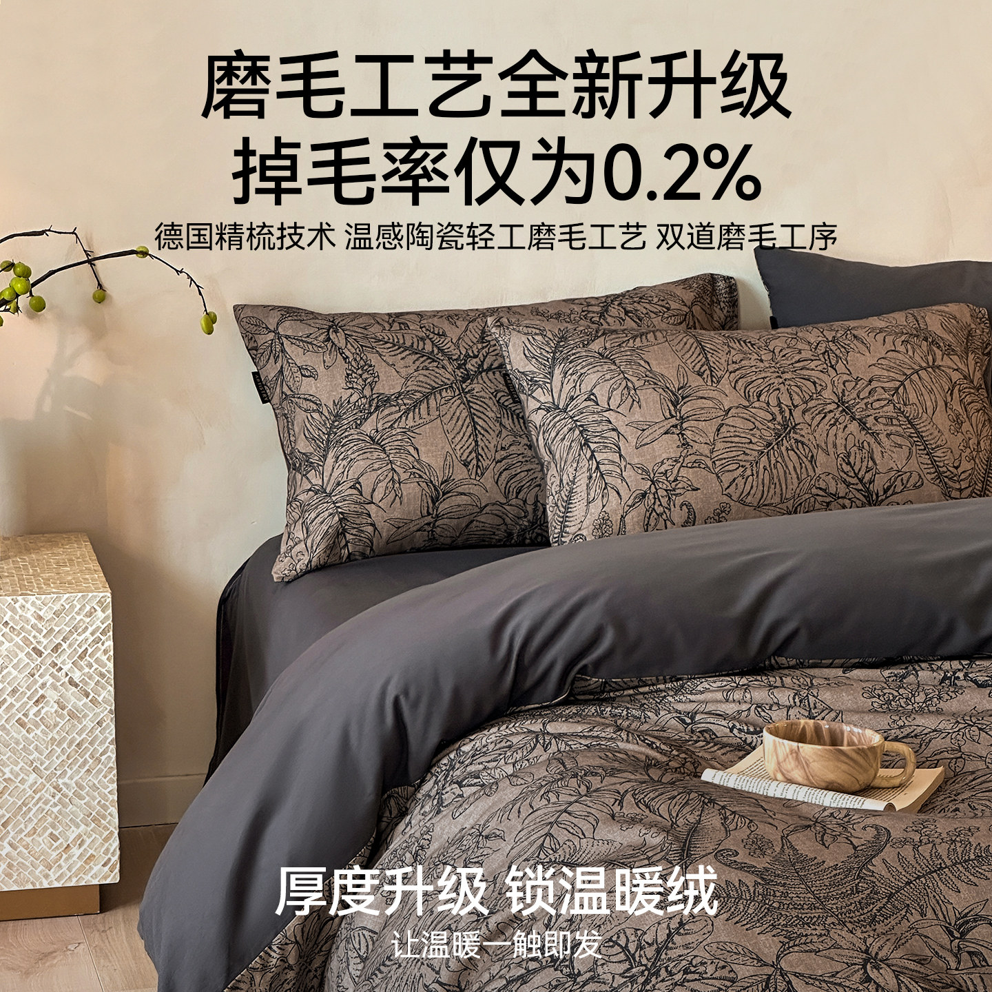 轻奢高级感全棉磨毛床上四件套纯棉主卧室复古床单被套床品三件套