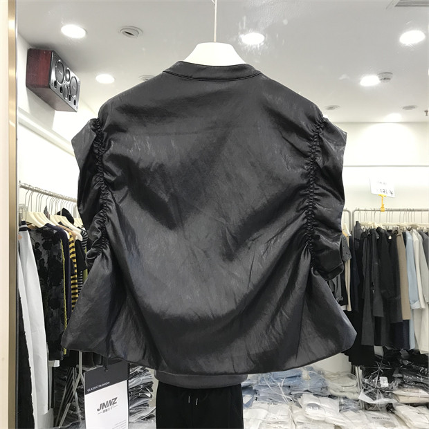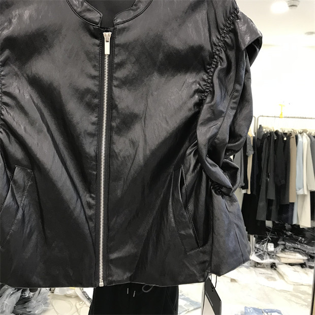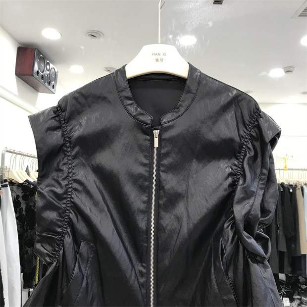 欧货高端2026年早春新款立领拉链抽绳飞飞袖pu皮衣女马甲外套8192