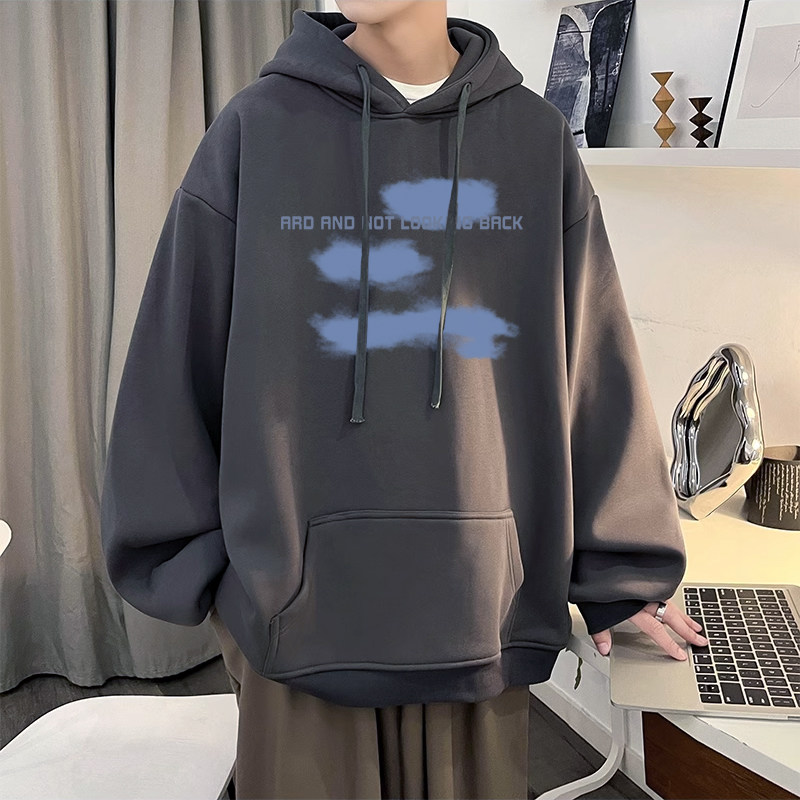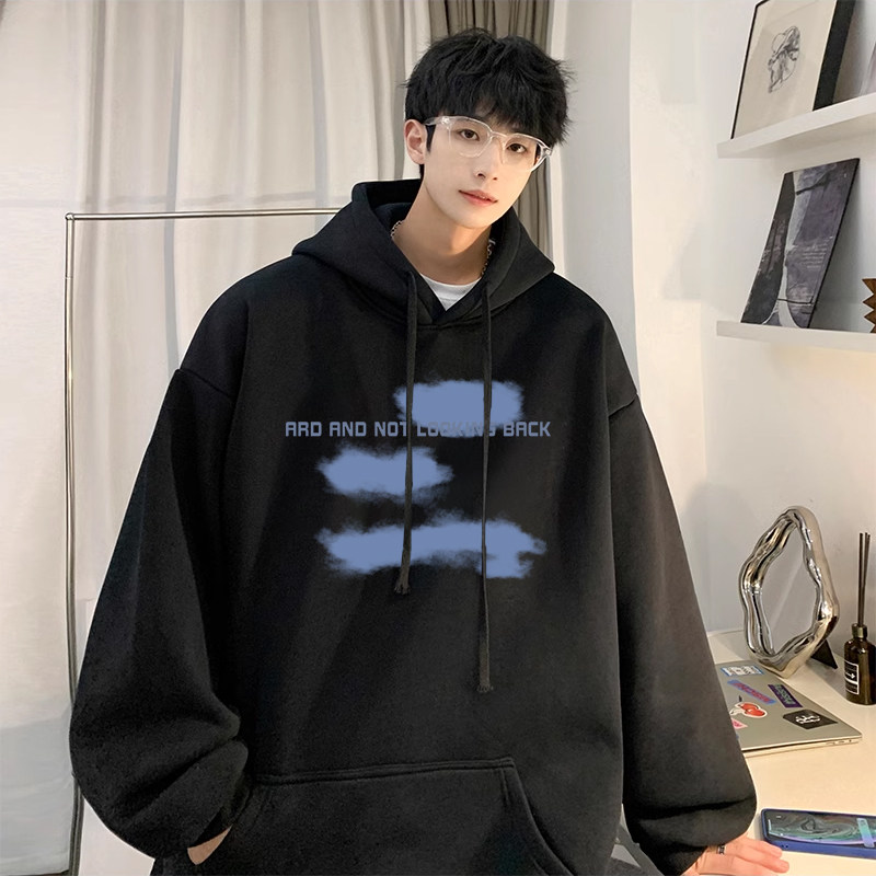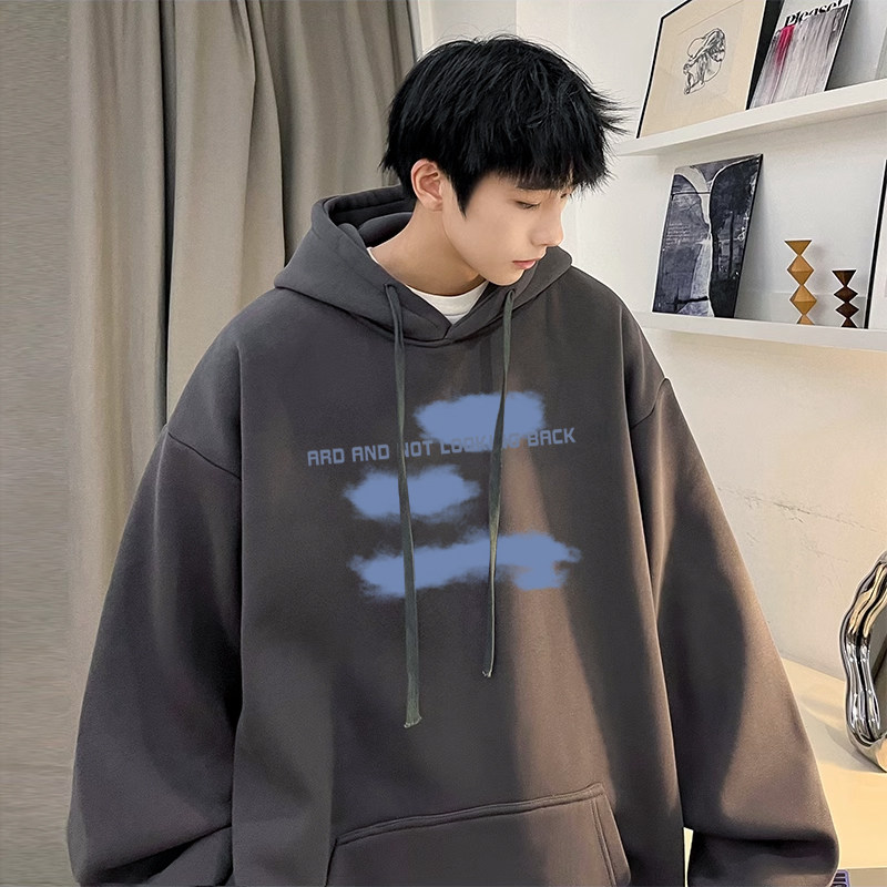 秋天白色带帽衫潮流青少年连帽卫衣外套男款初中学生套头衫春秋款