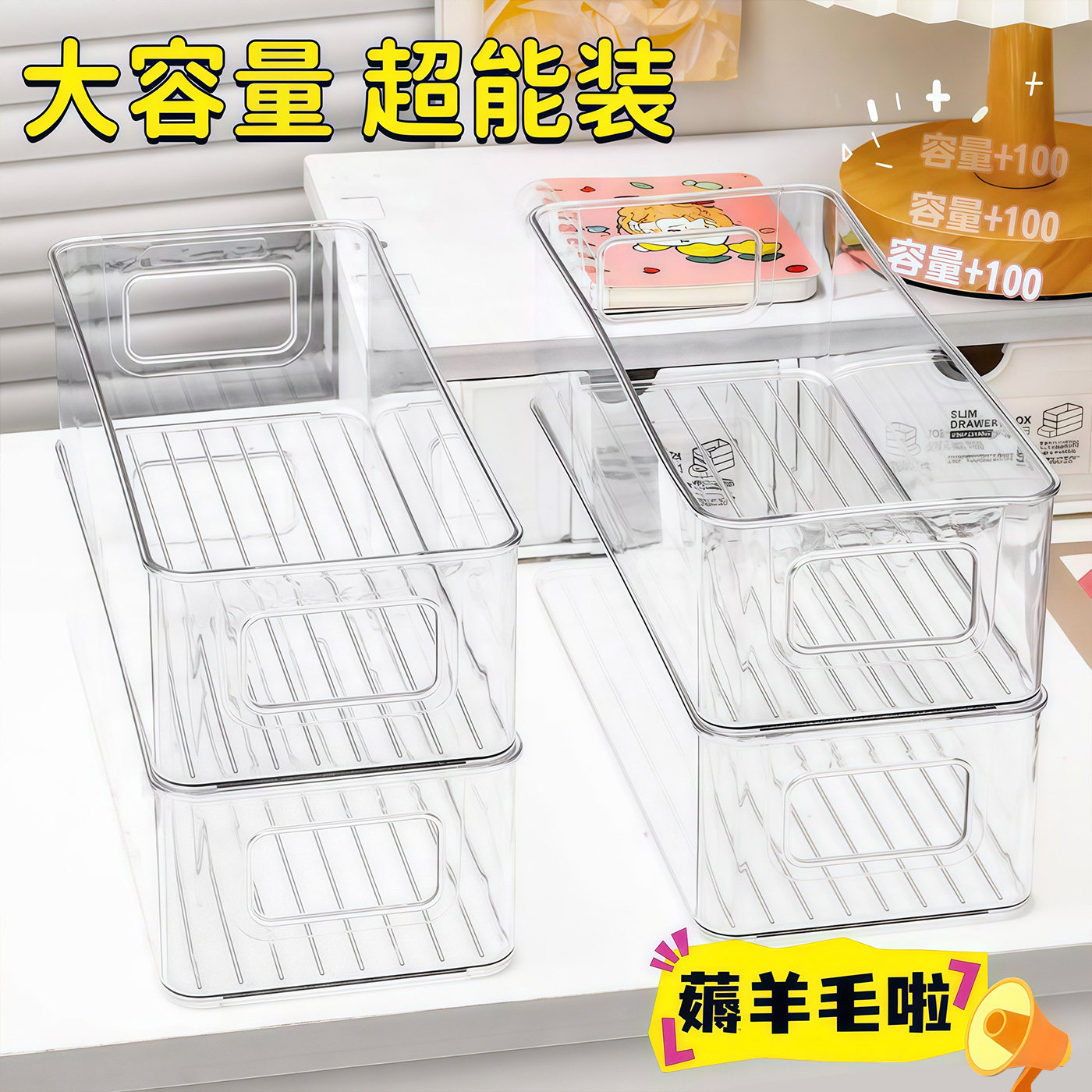桌面宿舍收纳盒长条窄长型长方形亚克力透明杂物小物件抽屉分隔盒