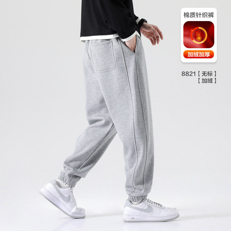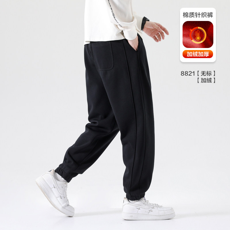 卫裤男秋冬季休闲运动裤男针织宽松束脚长裤青少年黑色加绒裤子男