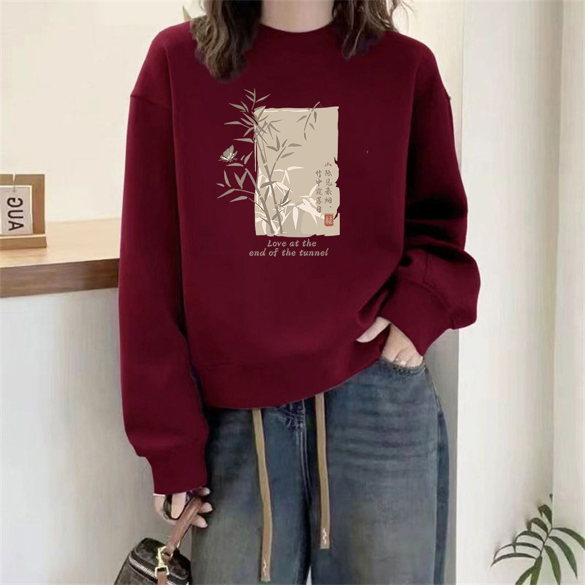 山东即墨高端小个子纯棉卫衣女秋冬国风加绒宽松正肩内搭加厚外套